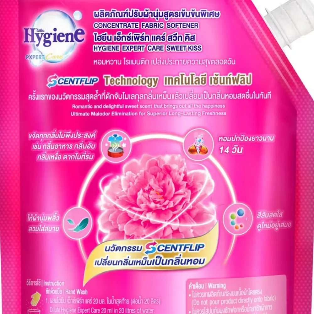 - ไฮยีน เอ็กซ์เพิร์ท แคร์ ผลิตภัณฑ์ปรับผ้านุ่ม สูตรเข้มข้นพิเศษ กลิ่นสวีทคิส<br />