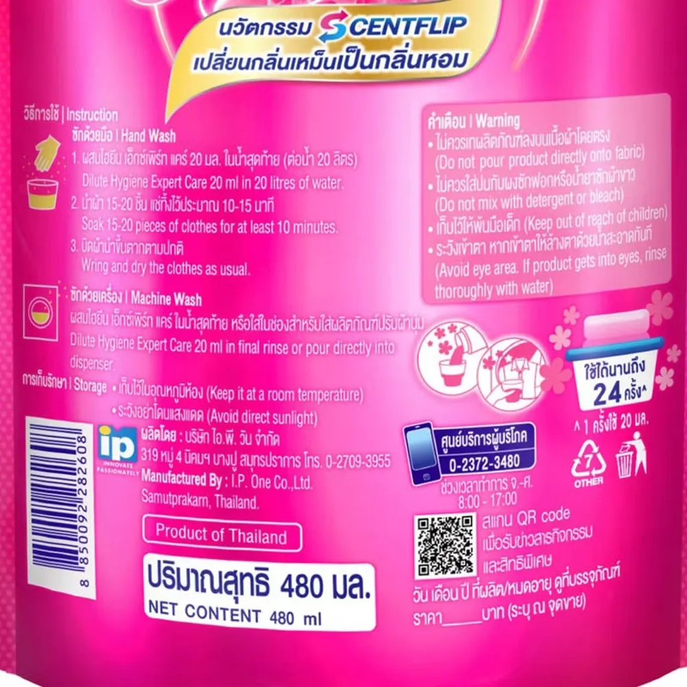 ไฮยีน เอ็กซ์เพิร์ท แคร์ ผลิตภัณฑ์ปรับผ้านุ่ม สูตรเข้มข้นพิเศษ กลิ่นสวีทคิส 480 มล.