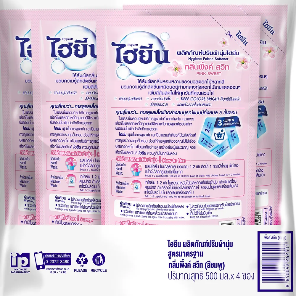 ไฮยีน น้ำยาปรับผ้านุ่ม กลิ่นพิ้งค์สวีท 500 มล. แพ็ค 3