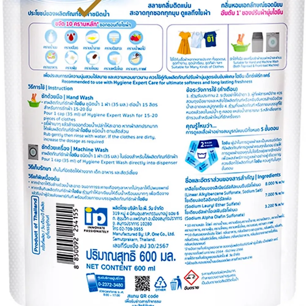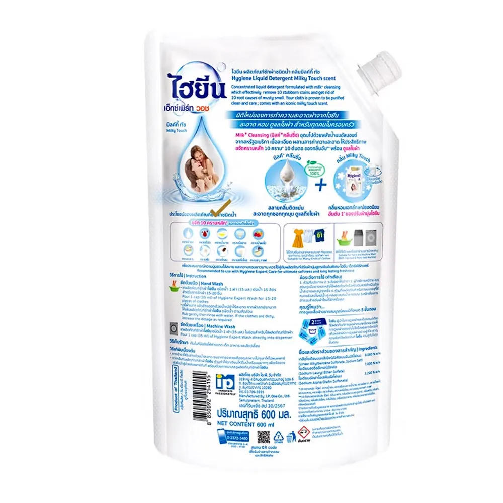ไฮยีน น้ำยาซักผ้าสูตรเข้มข้น เอ็กซ์เพิร์ม วอซ กลิ่นมิลค์กี้ ทัช 600 มล.
