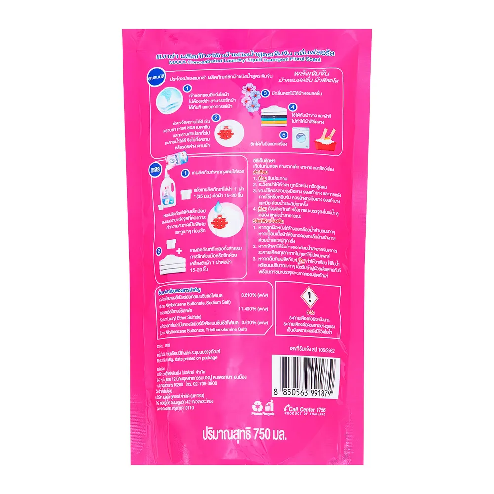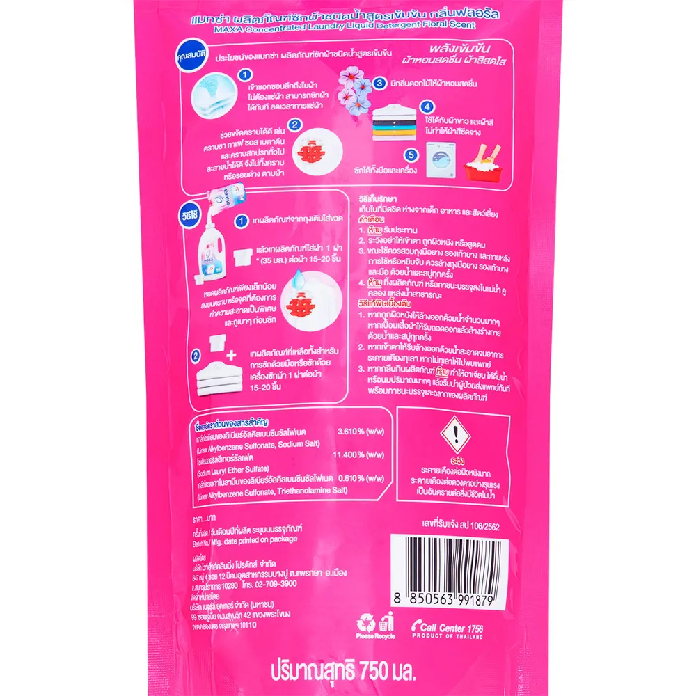 แมกซ่า ผลิตภัณฑ์น้ำยาซักผ้า สูตรเข้มข้น กลิ่นฟลอรัล 750 มล.