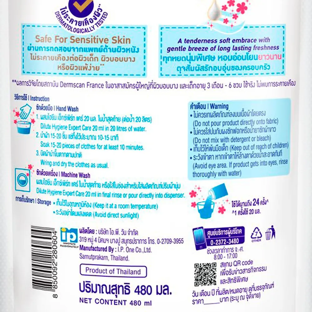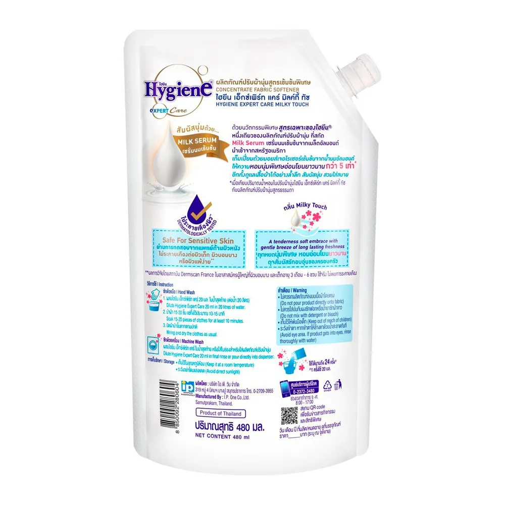 ไฮยีน เอ็กซ์เพิร์ท แคร์ น้ำยาปรับผ้านุ่ม สูตรเข้มข้นพิเศษ กลิ่นมิลค์กี้ ทัช 480 มล.