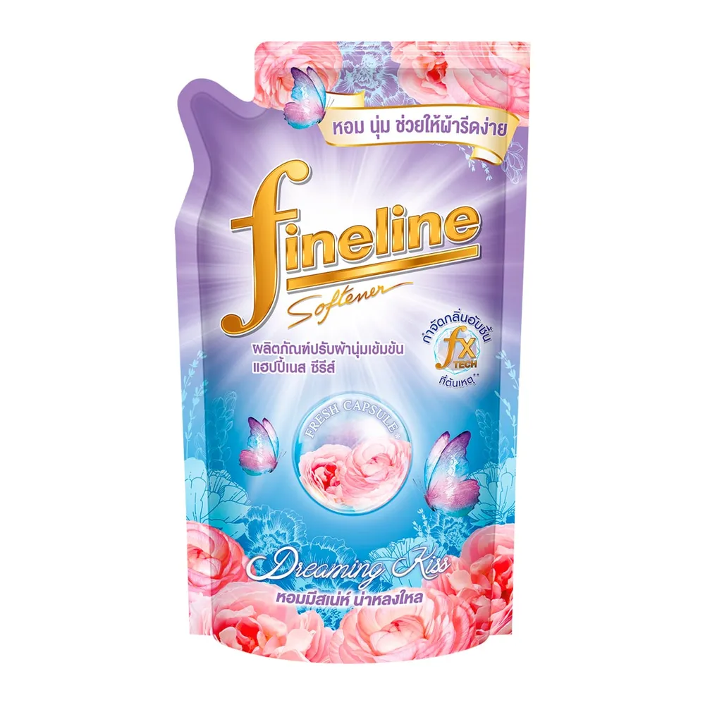 <p>ไฟน์ไลน์ น้ำยาปรับผ้านุ่มเข้มข้น แฮปปี้เนส ซีรีส์ กลิ่นดรีมมิ่ง คิส<br />