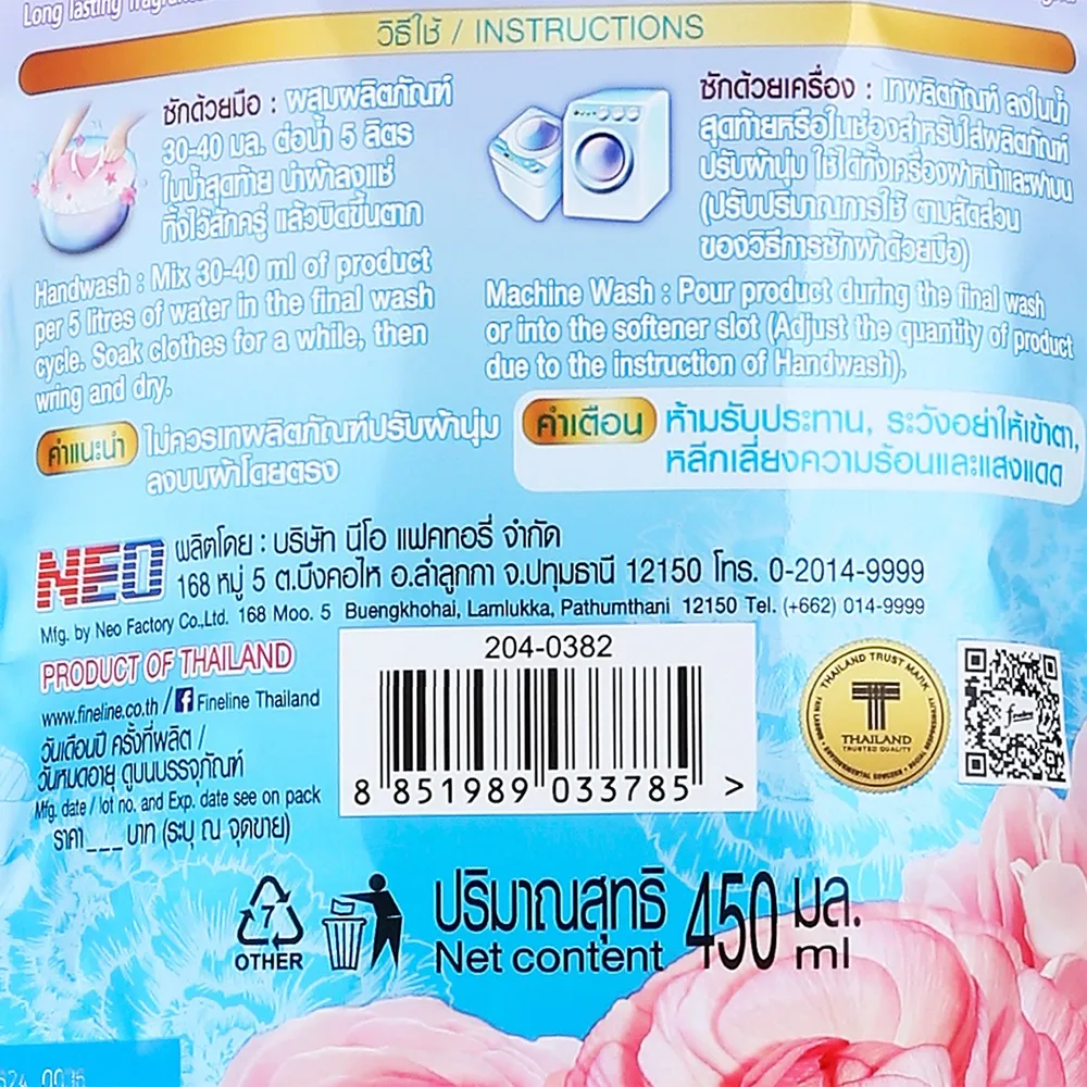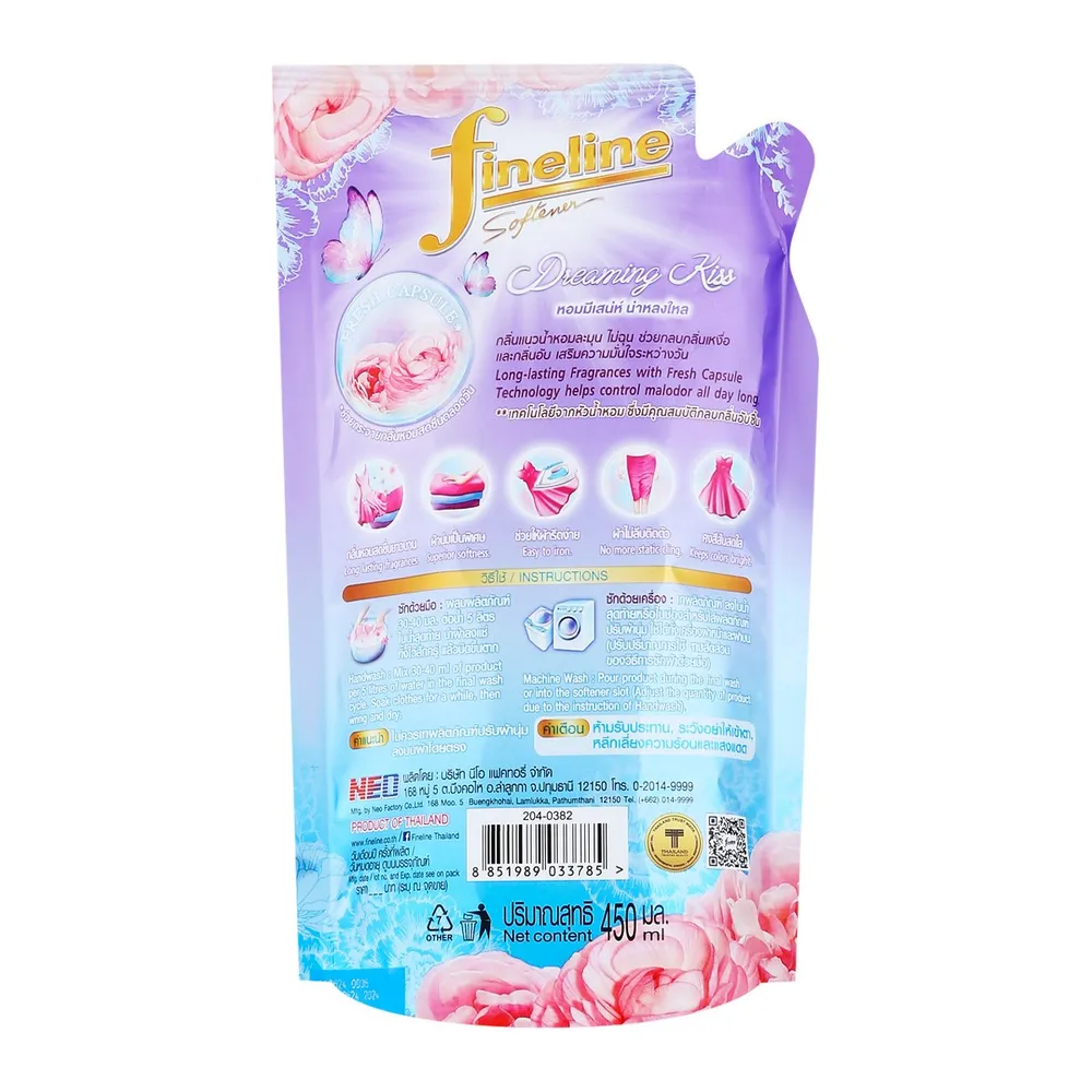 ไฟน์ไลน์ น้ำยาปรับผ้านุ่มเข้มข้น แฮปปี้เนส ซีรีส์ กลิ่นดรีมมิ่ง คิส 450 มล.
