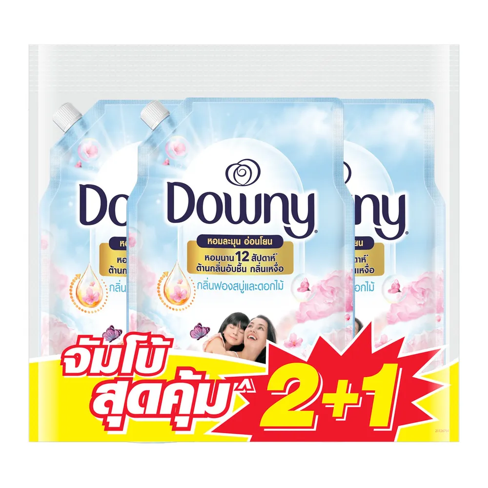 ดาวน์นี่ น้ำยาปรับผ้านุ่ม กลิ่นหอมฟองสบู่และดอกไม้ 1 ล. แพ็ค 2+1