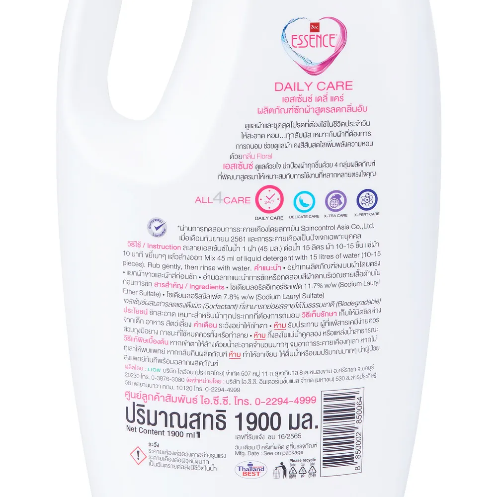 - เอสเซ้นซ์ เดลี่แคร์ น้ำยาซักผ้า กลิ่นฟลอรัล<br />