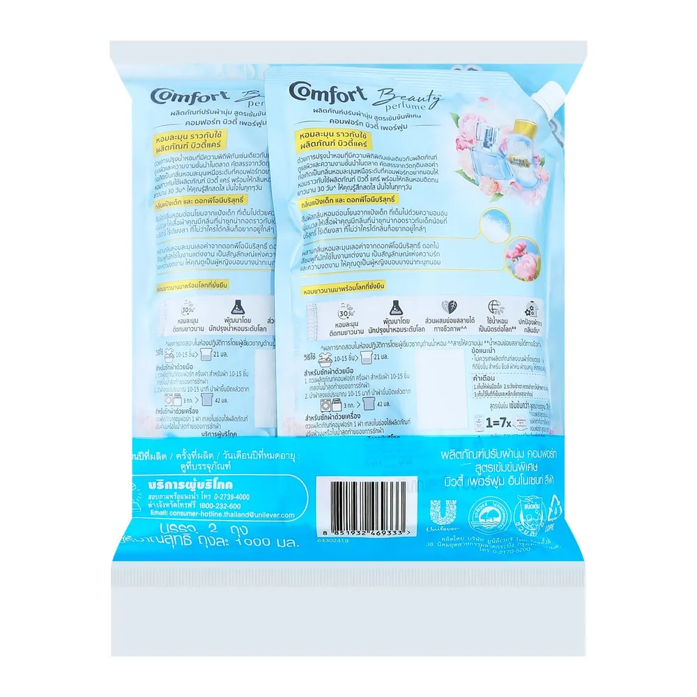 คอมฟอร์ท บิวตี้ เพอร์ฟูม ผลิตภัณฑ์ปรับผ้านุ่ม กลิ่นเบบี้พาวเดอร์ 1 ล. แพ็คคู่