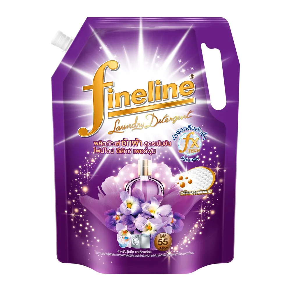 ไฟน์ไลน์ ดีลักซ์ เพอร์ฟูม ผลิตภัณฑ์ซักผ้าสูตรเข้มข้น ซักสะอาด ขจัดคราบฝังลึกได้ง่ายขึ้น ด้วยพลังการขจัดคราบฝังแน่น เข้าซอกซอนลึกถึงใยผ้า สูตรถนอมผ้า ช่วยให้สีสันของผ้ายังคงสวย สดใส ช่วยในการดูแลผ้าให้สะอาดพร้อมเสน่ห์น้ำหอมสุดพรีเมียม<br />