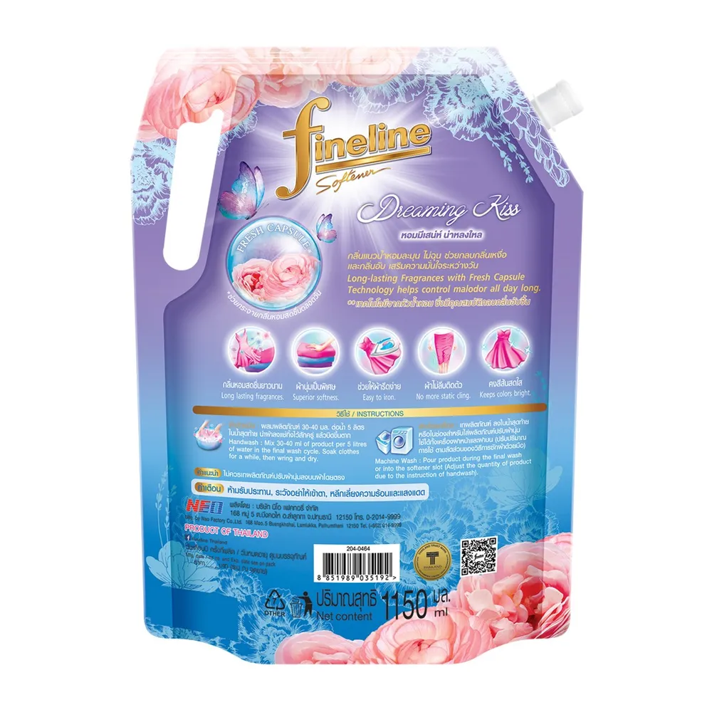 ไฟน์ไลน์ น้ำยาปรับผ้านุ่ม แฮปปี้เนส ซีรีส์ กลิ่นดรีมมิ่ง คิส 1150 มล.