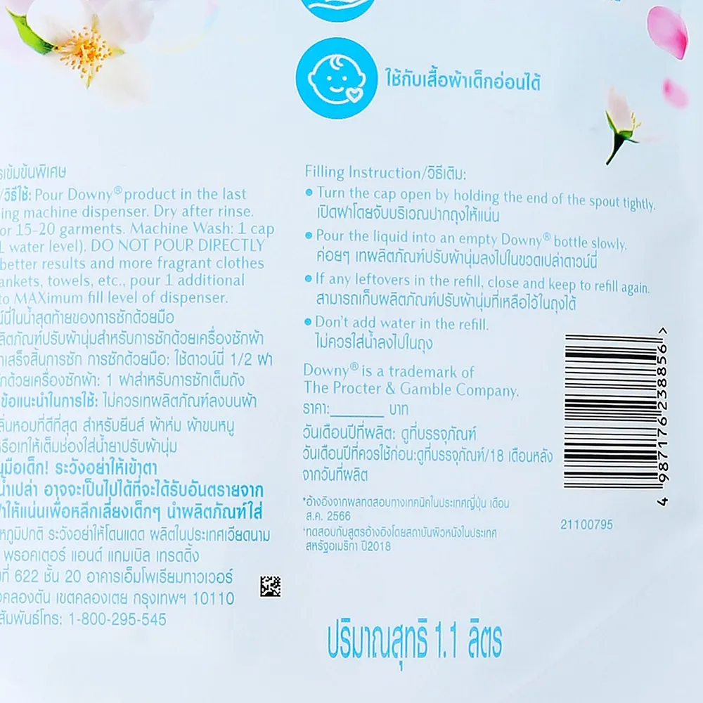 ดาวน์นี่ น้ำยาปรับผ้านุ่ม กลิ่นหอมละมุนจากฟองสบู่และดอกไม้ 1.1 ล.