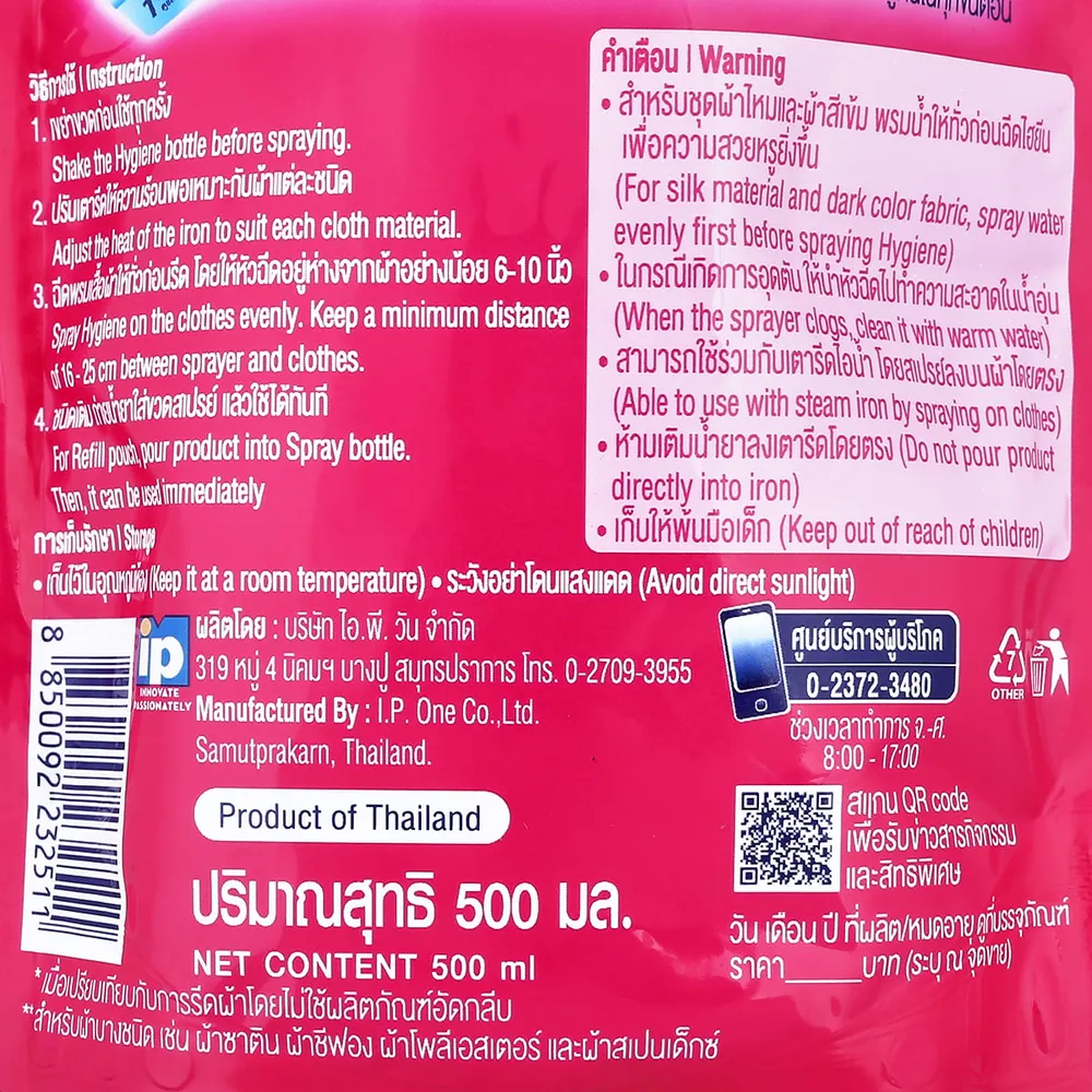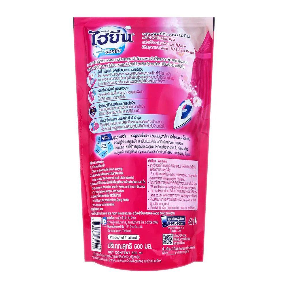 ไฮยีน น้ำยาอัดกลีบ กลิ่นพิ้งค์ บลอสซั่ม ถุงเติม 500 มล.