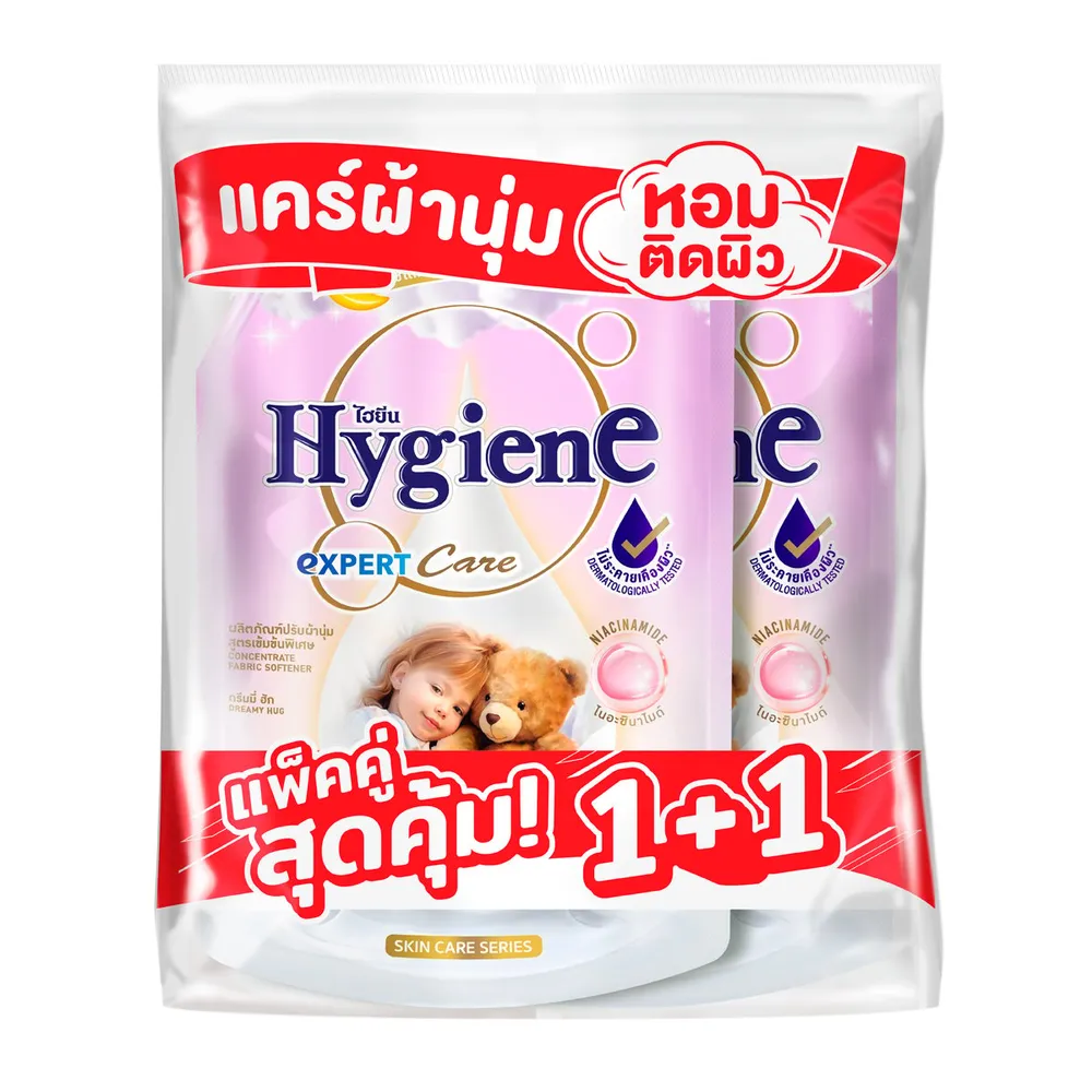 ไฮยีน เอ็กซ์เพิร์ท แคร์ น้ำยาปรับผ้านุ่มสูตรเข้มข้นพิเศษ ดรีมมี่ ฮัก 1000 มล. แพ็ค 1+1