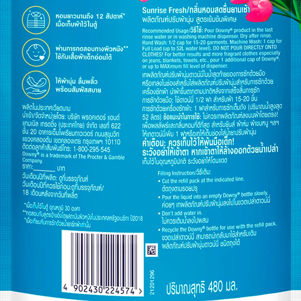 ดาวน์นี่ น้ำยาปรับผ้านุ่ม สูตรเข้มข้นพิเศษ กลิ่นหอมสดชื่นยามเช้า ถุงเติม 480 มล.