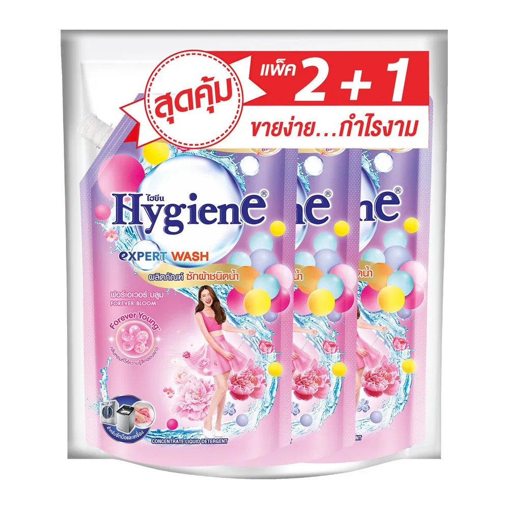 <p>ไฮยีน ผลิตภัณฑ์ซักผ้าชนิดน้ำ ฟอร์เอเวอร์บลูม 600 มล. แพ็ค 2+1<br />
