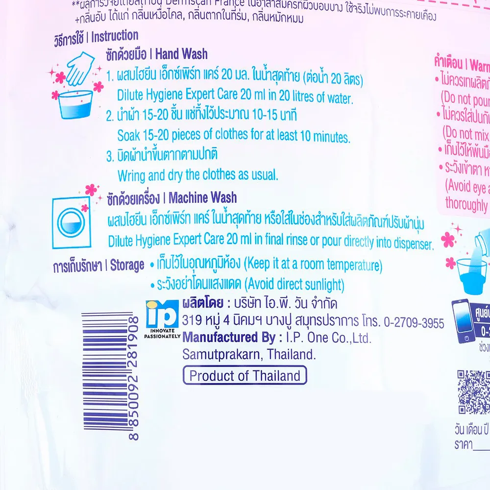 ไฮยีน เอ็กซ์เพิร์ท แคร์ น้ำยาปรับผ้านุ่ม สูตรเข้มข้นพิเศษ กลิ่นบลูมมิ่งทัช 1000 มล.