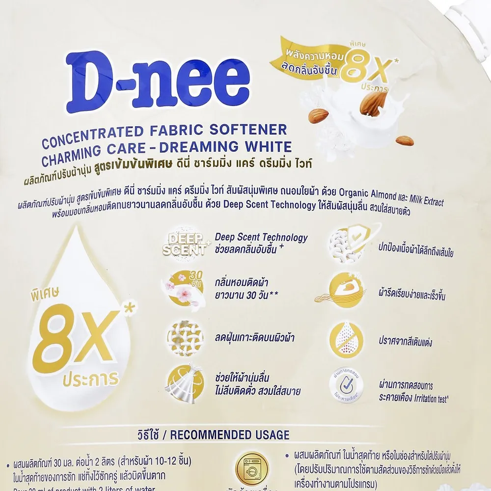 <p>ดีนี่ น้ำยาปรับผ้านุ่ม สูตรเข้มข้นพิเศษ ชาร์มมิ่ง แคร์ ดรีมมิ่ง ไวท์<br />