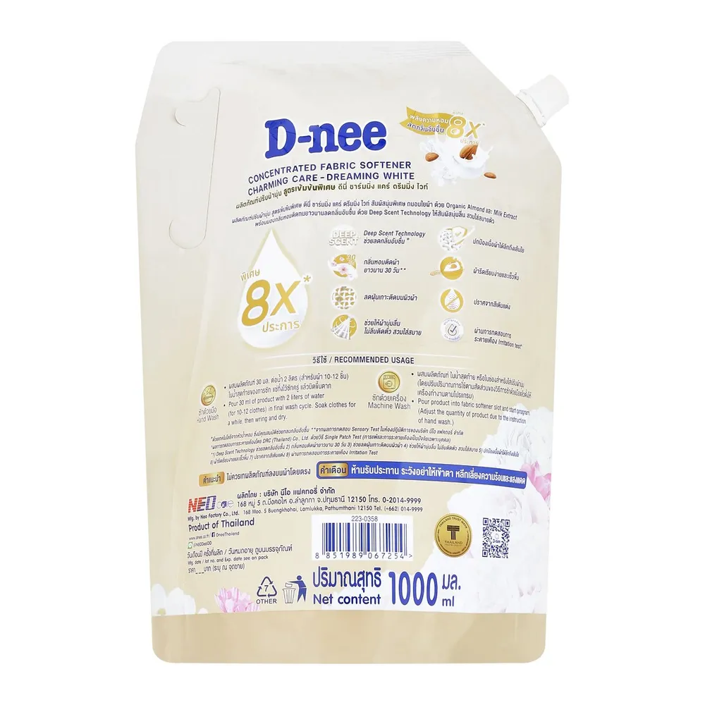 ดีนี่ น้ำยาปรับผ้านุ่ม สูตรเข้มข้นพิเศษ ชาร์มมิ่ง แคร์ ดรีมมิ่ง ไวท์ 1000 มล.