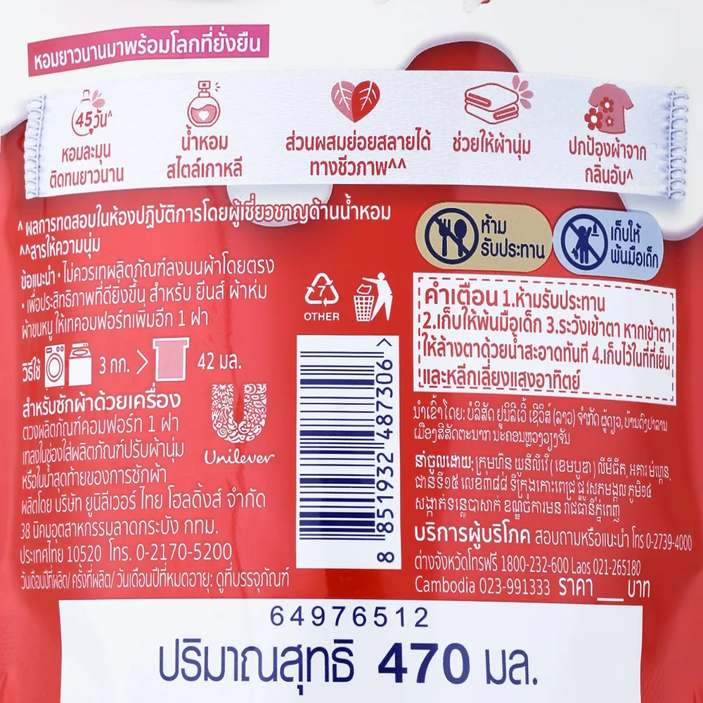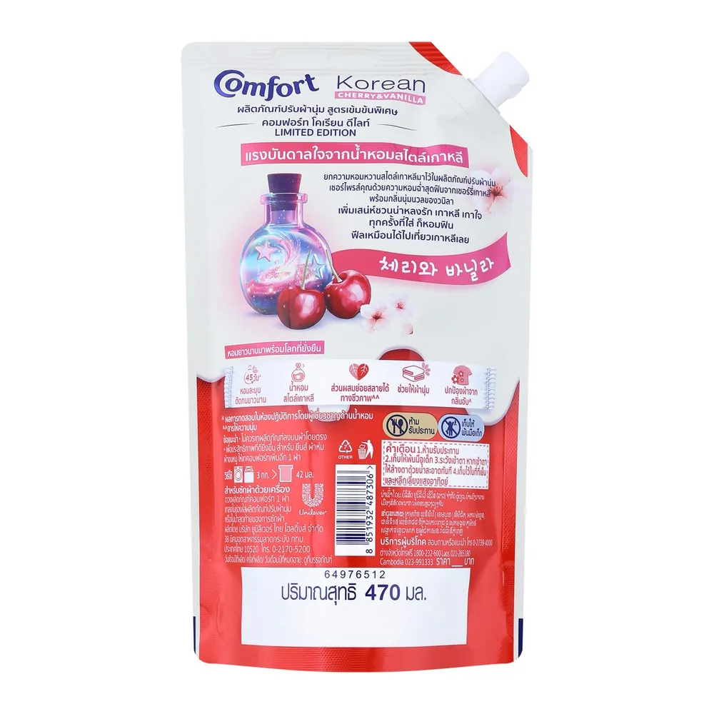 คอมฟอร์ท โคเรียน น้ำยาปรับผ้านุ่ม กลิ่นเชอร์รี วานิลลา 470 มล.