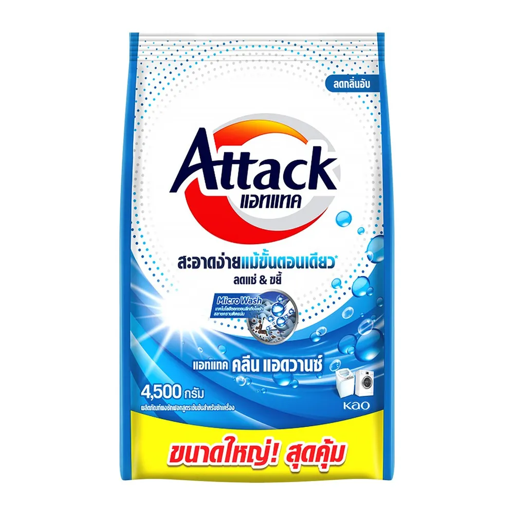 แอทแทค คลีน แอดวานซ์ ผลิตภัณฑ์ผงซักฟอกสูตรเข้มข้นสำหรับซักเครื่อง 4500 ก.