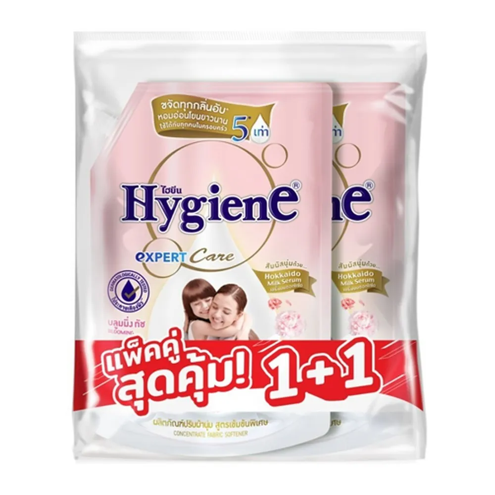 ไฮยีน เอ็กซ์เพิร์ท แคร์ ผลิตภัณฑ์ปรับผ้านุ่ม สูตรเข้มข้นพิเศษ กลิ่นบลูมมิ่งทัช 1000 มล. แพ็ค 1+1
