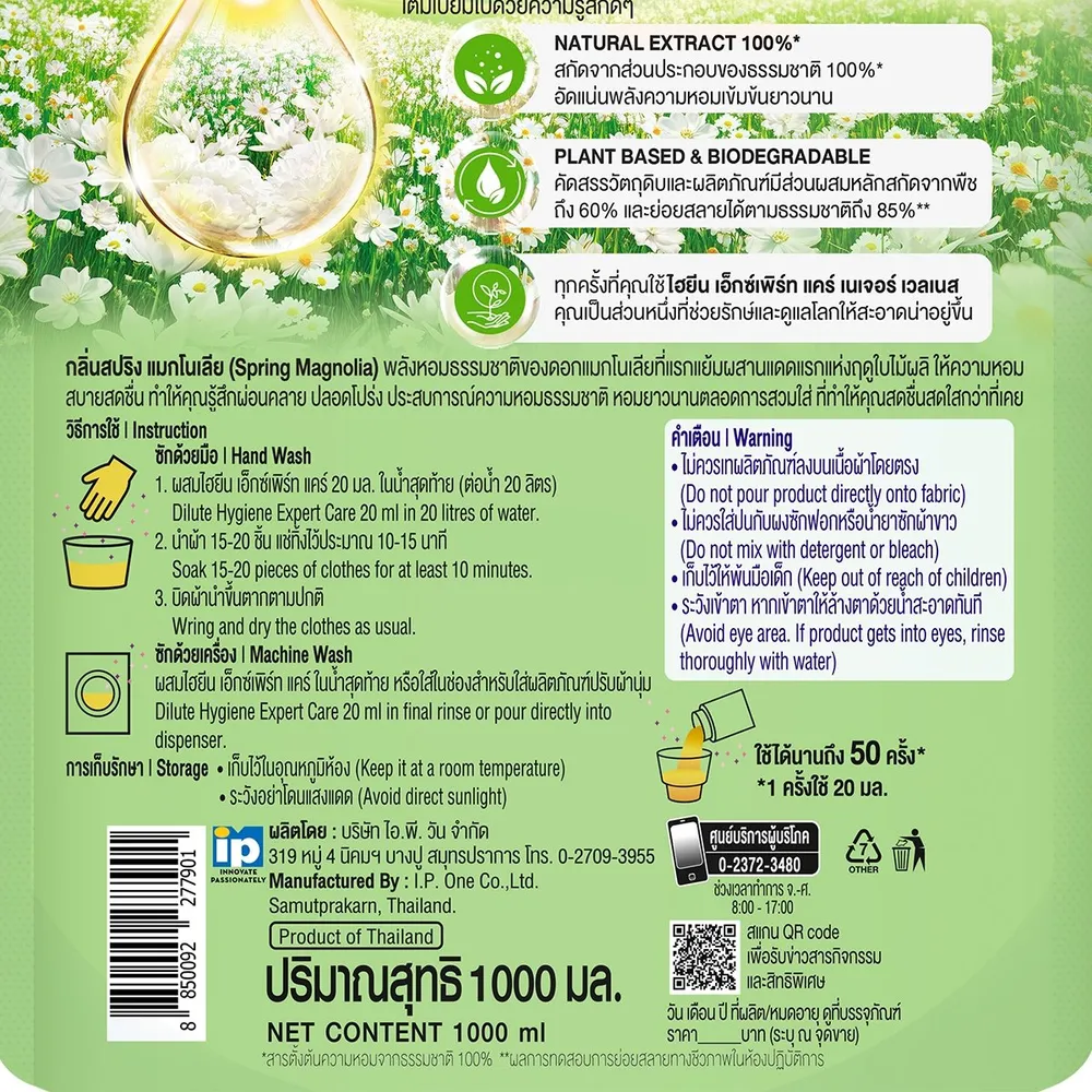 ไฮยีน เอ็กซ์เพิร์ท แคร์ ไลฟ์ เนเจอร์ น้ำยาปรับผ้านุ่ม สูตรเข้มข้นพิเศษ กลิ่นสปริง แมกโนเลีย 1000 มล.