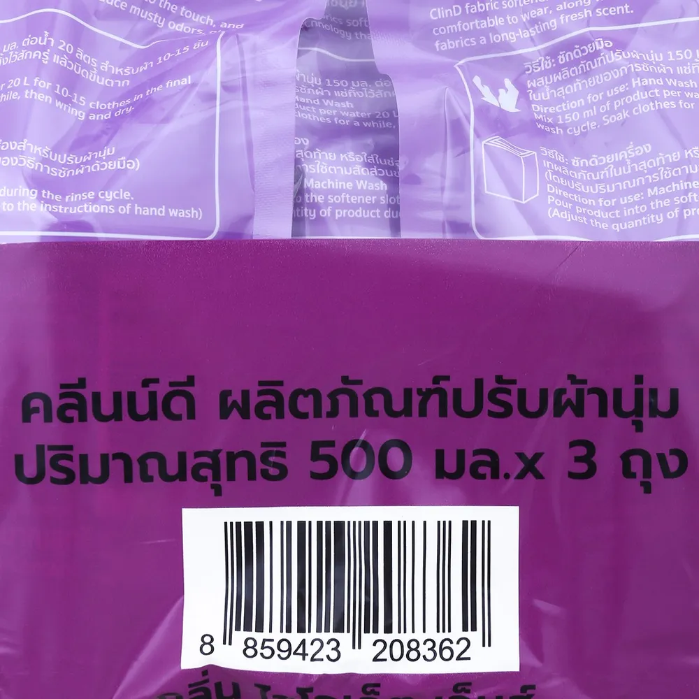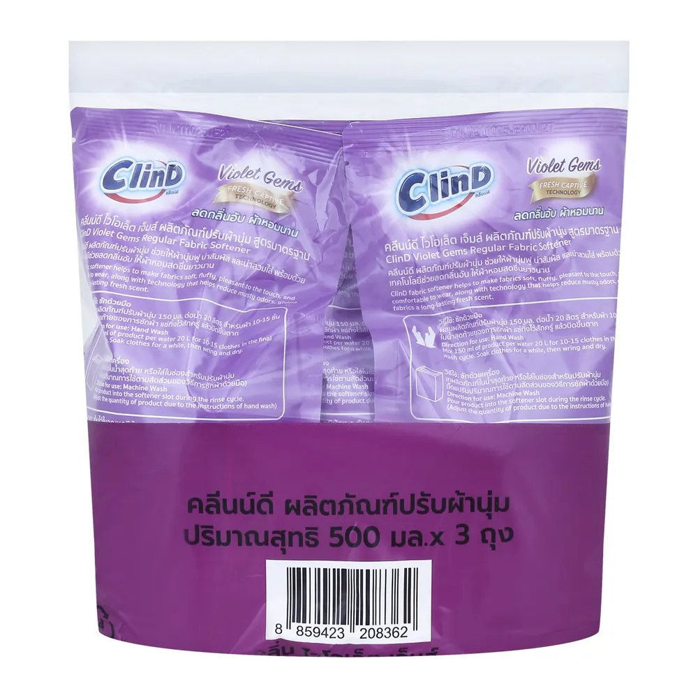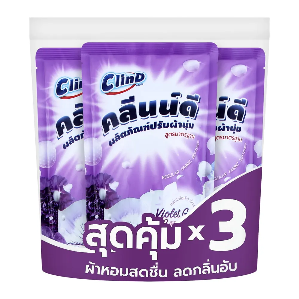 คลีนน์ดี ไวโอเล็ต เจ็มส์ น้ำยาปรับผ้านุ่ม สูตรมาตรฐาน 500 มล. แพ็ค 3