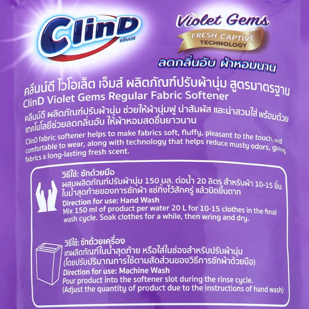 <p>คลีนน์ดี ไวโอเล็ต เจ็มส์ น้ำยาปรับผ้านุ่ม สูตรมาตรฐาน<br />