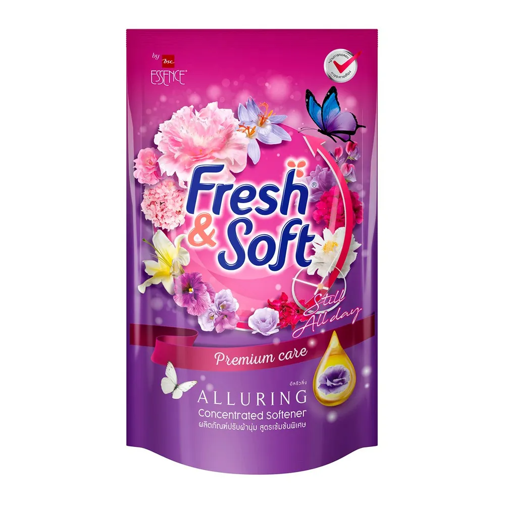 ผลิตภัณฑ์ปรับผ้านุ่ม เฟรช แอนด์ ซอฟท์ สูตรเข้มข้นพิเศษ ช่วยดูแลผ้าที่คุณรัก ให้หอม สดชื่นทุกครั้งที่เคลื่อนไหว ช่วยปกป้องกลิ่นอับ กลิ่นเหงื่อ และกลิ่นอาหารระหว่างวัน ช่วยให้ผ้านุ่มฟู ลื่น รีดง่าย คืนความสดชื่น มีชีวิตชีวาตลอดวัน<br />