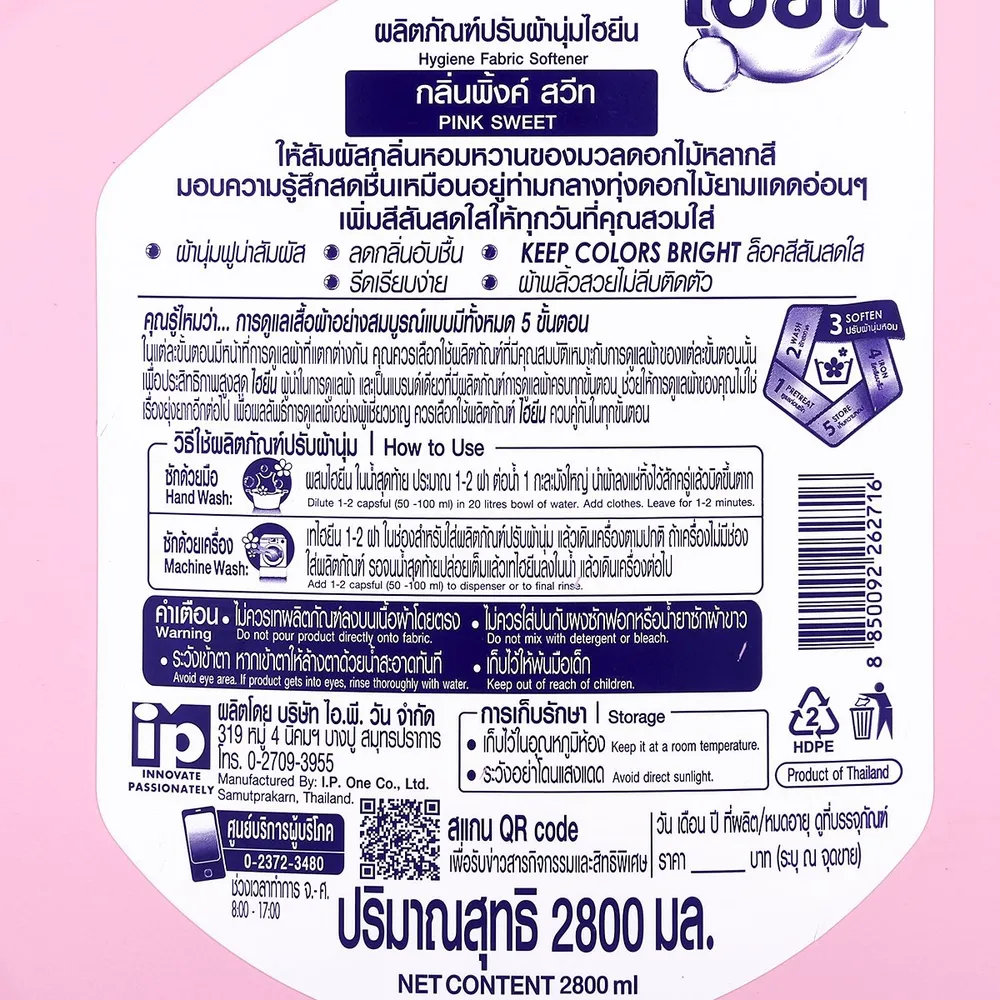 ไฮยีน น้ำยาปรับผ้านุ่ม กลิ่นพิ้งค์ สวีท 2800 มล.