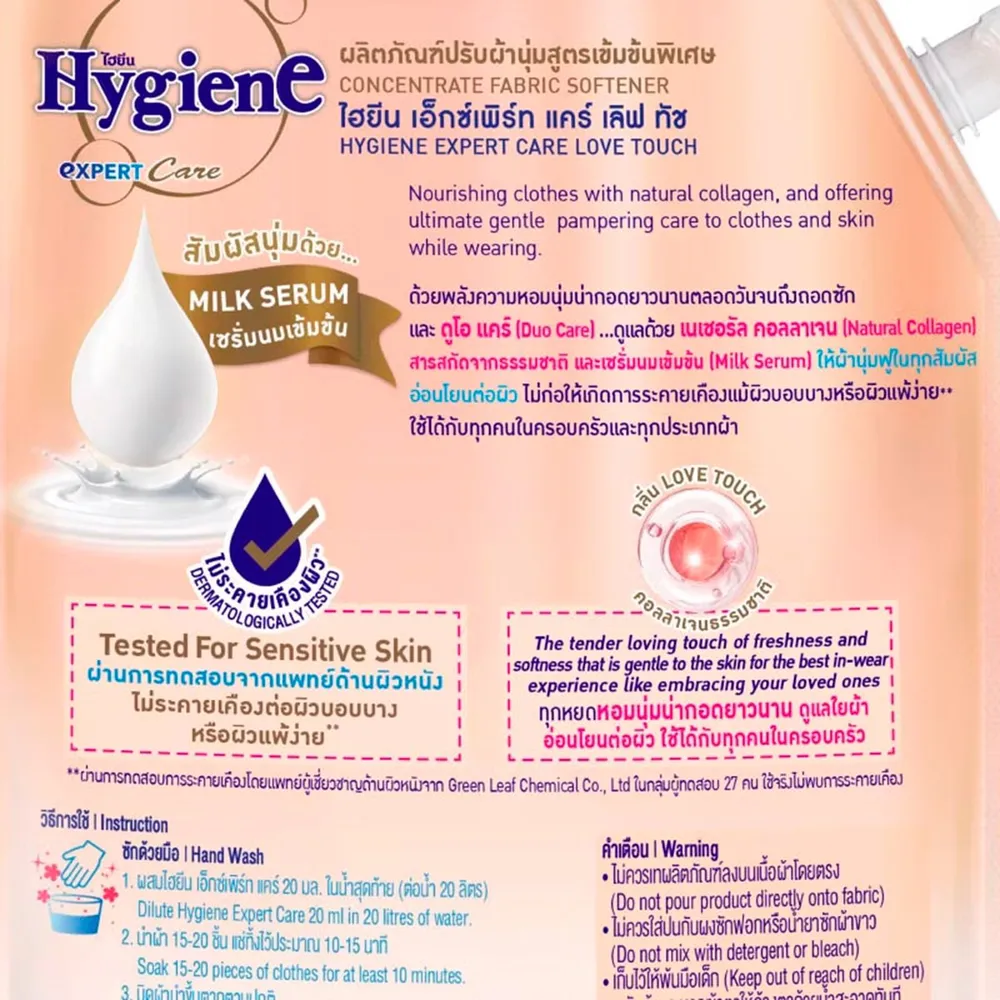 <p>ไฮยีน เอ็กซ์เพิร์ท แคร์ น้ำยาปรับผ้านุ่ม กลิ่น เลิฟทัช<br />