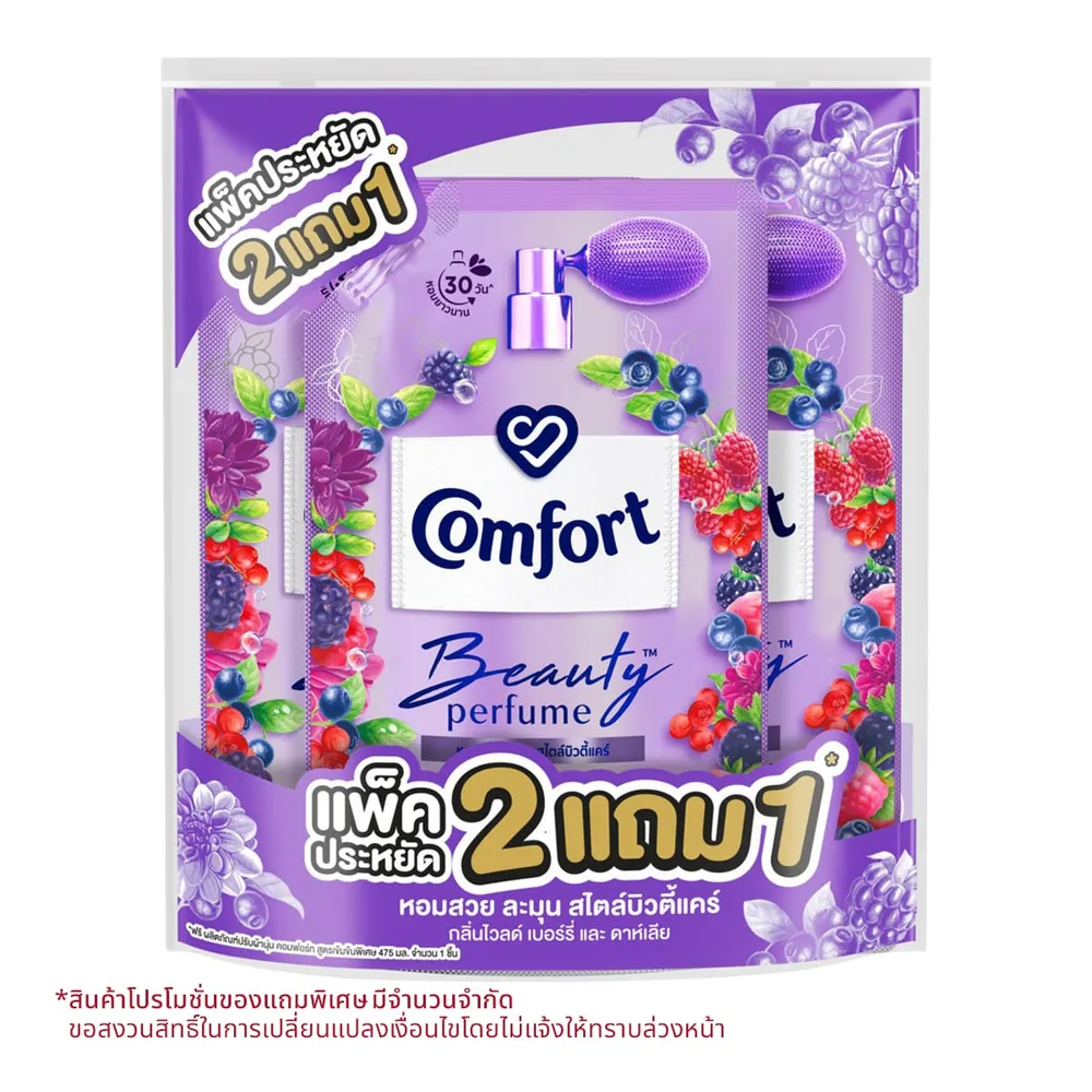 <p>คอมฟอร์ท บิวตี้ เพอร์ฟูม กลิ่นไวลด์ เบอร์รี่ และ ดาห์เลีย 475 มล. แพ็ค 2+1<br />