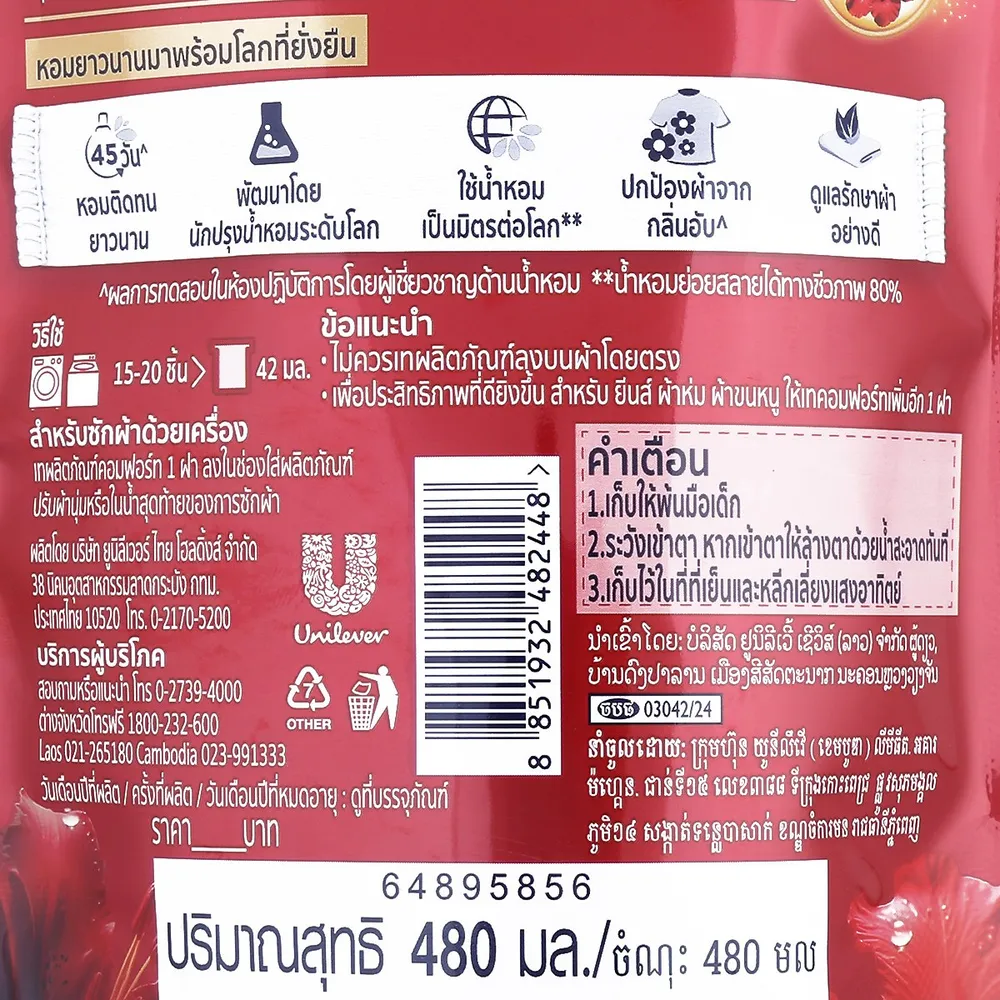 คอมฟอร์ท น้ำยาปรับผ้านุ่ม ลิลลี่แดงและดอกฮิบิสคัส 480 มล.
