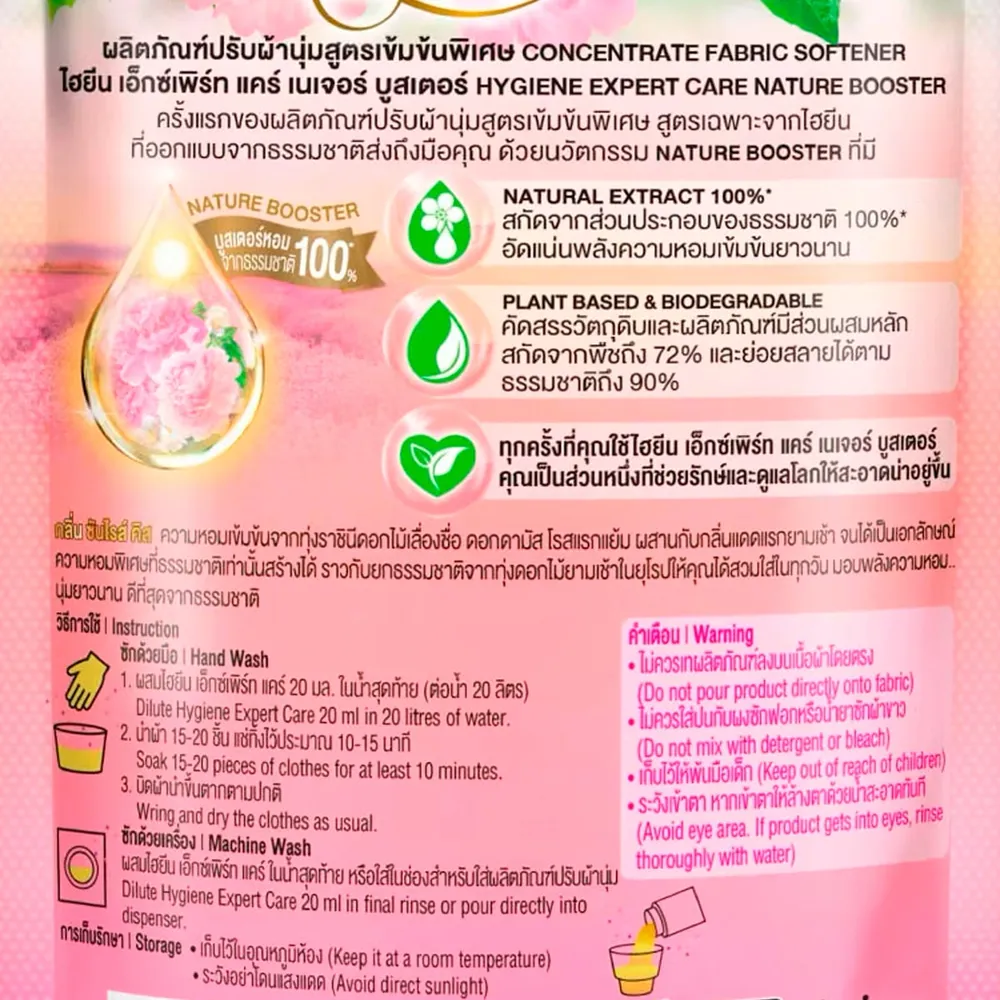 - ไฮยีน เอ็กซ์เพิร์ท แคร์ น้ำยาปรับผ้านุ่มสูตรเข้มข้นพิเศษ กลิ่นซันไรส์ คิส<br />