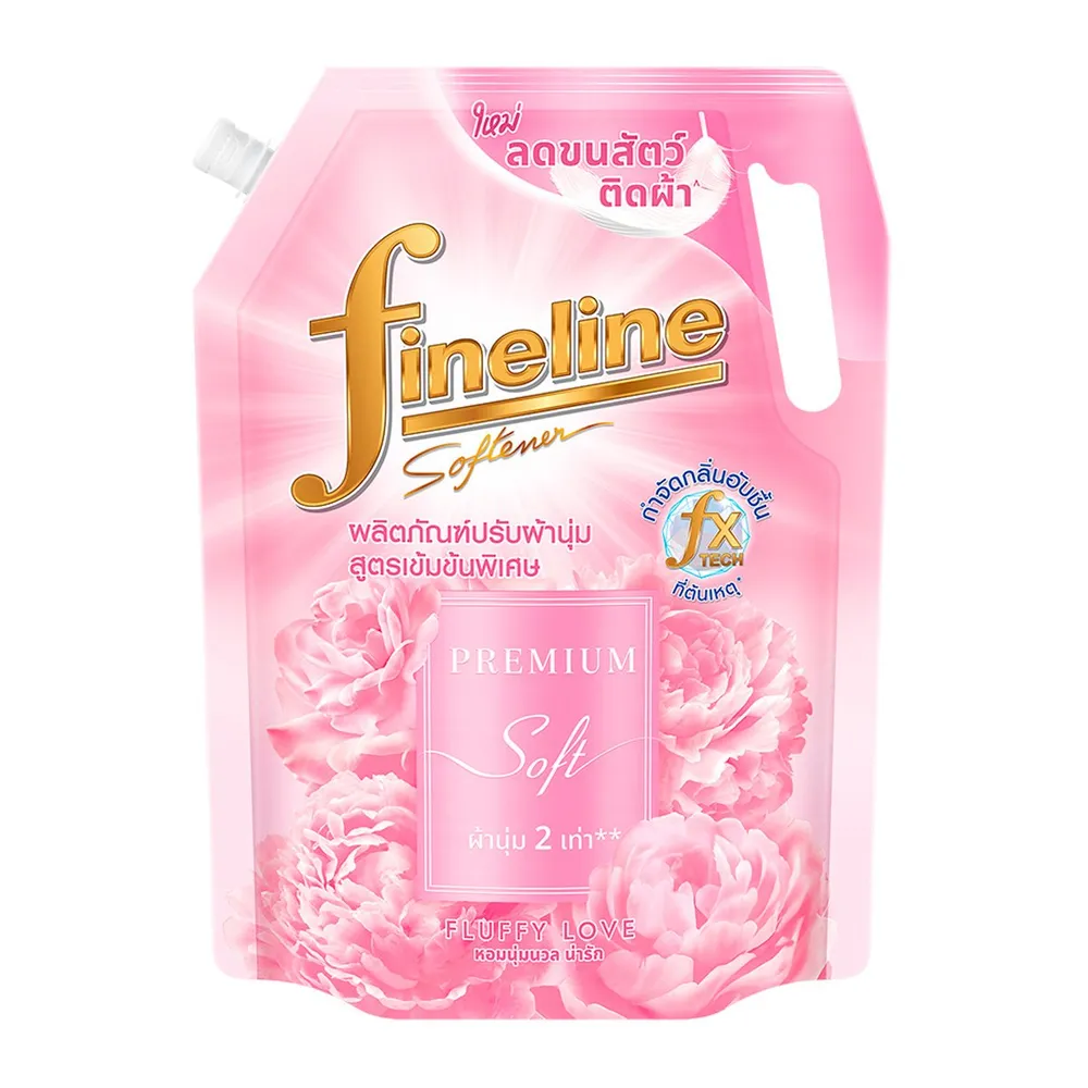 <p>ไฟน์ไลน์ พรีเมียมซอฟท์ น้ำยาปรับผ้านุ่มสูตรเข้มข้นพิเศษ กลิ่นฟัฟฟี่เลิฟ<br />