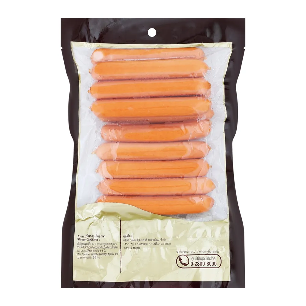 ไส้กรอกเนื้อเนียน สีน่ำตาลเนื้ออ่อน ๆ เนื้อแน่นหนังกรอบ หอมกลิ่นรมควัน รสชาติฉ่ำเนื้อถึงใจ<br />