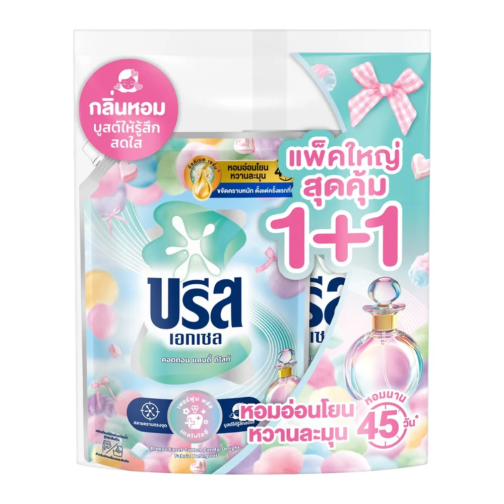 บรีส เอกเซล คอตตอน แคนดี้ ดีไลท์ น้ำยาซักผ้าสูตรเข้มข้น 1100 มล. แพ็ค 1+1
