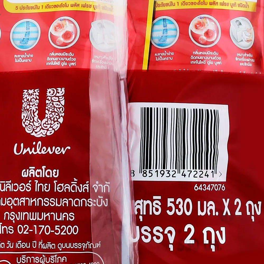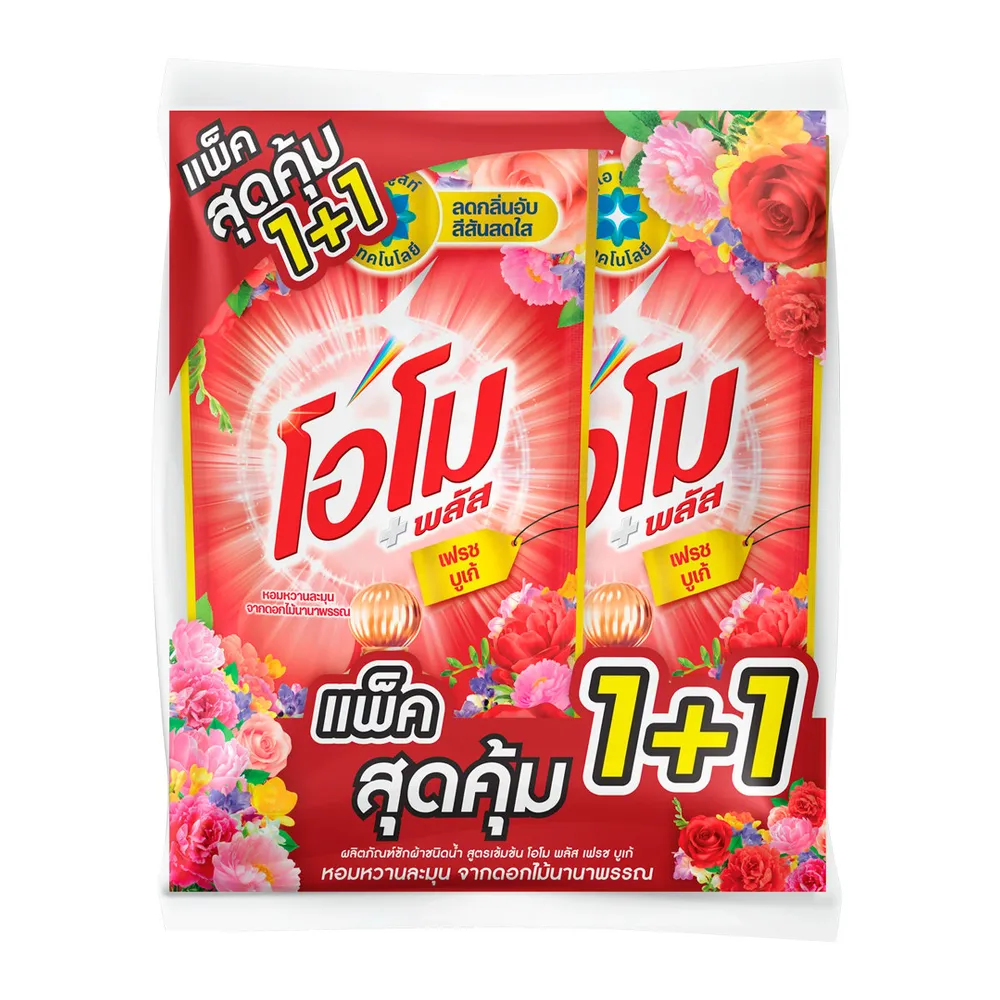<p>โอโม พลัส น้ำยาซักผ้าชนิดน้ำสูตรเข้มข้น กลิ่นเฟรชบูเก้ 530 มล. แพ็คคู่<br />