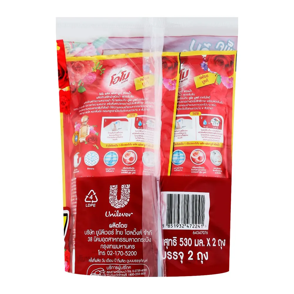 โอโม พลัส น้ำยาซักผ้าชนิดน้ำสูตรเข้มข้น กลิ่นเฟรชบูเก้ 530 มล. แพ็คคู่