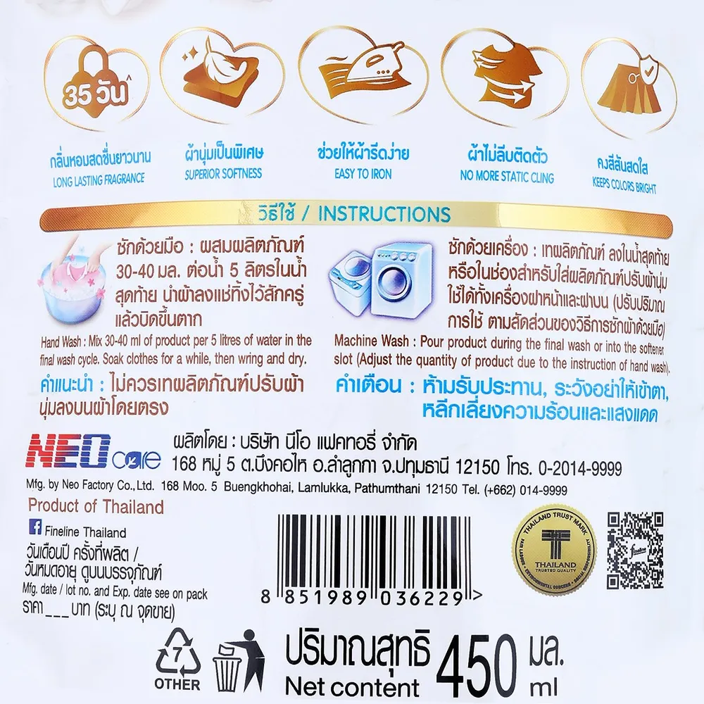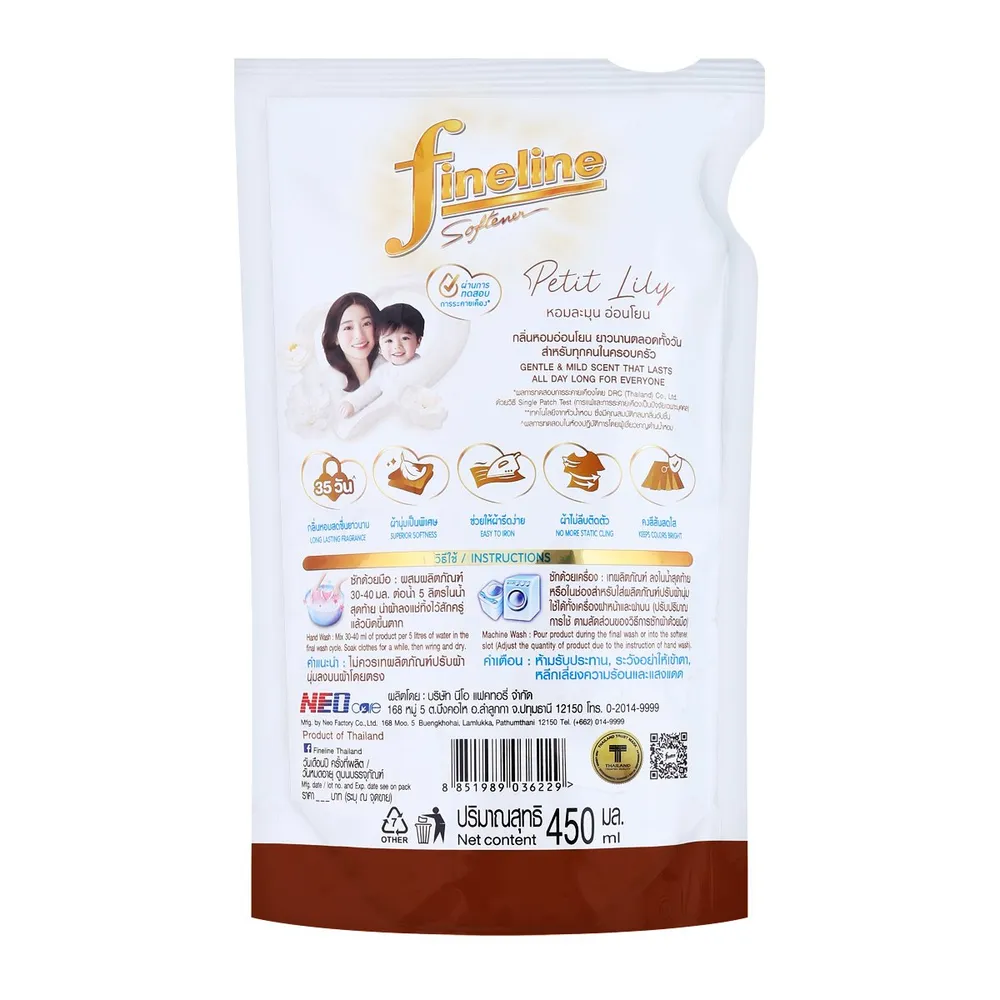 ไฟน์ไลน์ น้ำยาปรับผ้านุ่มสูตรเข้มข้น มายด์แอนด์แคร์ กลิ่นเพอร์ที ลิลลี่ 450 มล.