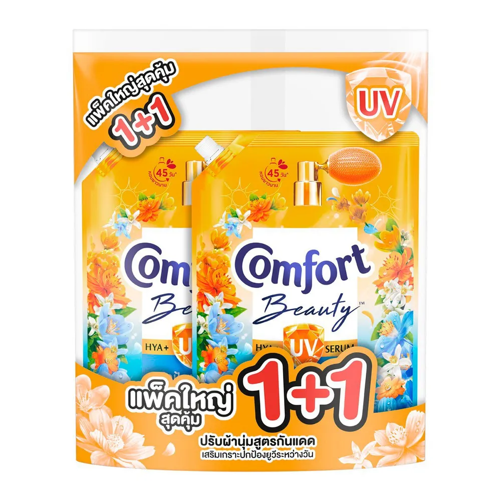 <p>คอมฟอร์ท บิวตี้ ไฮยา พลัส ยูวี ผลิตภัณฑ์ปรับผ้านุ่ม กลิ่นแดดยามเช้า &amp; ดอกไม้ทรอปิคอล 1000 มล. แพ็ค 1+1 ชิ้น<br />