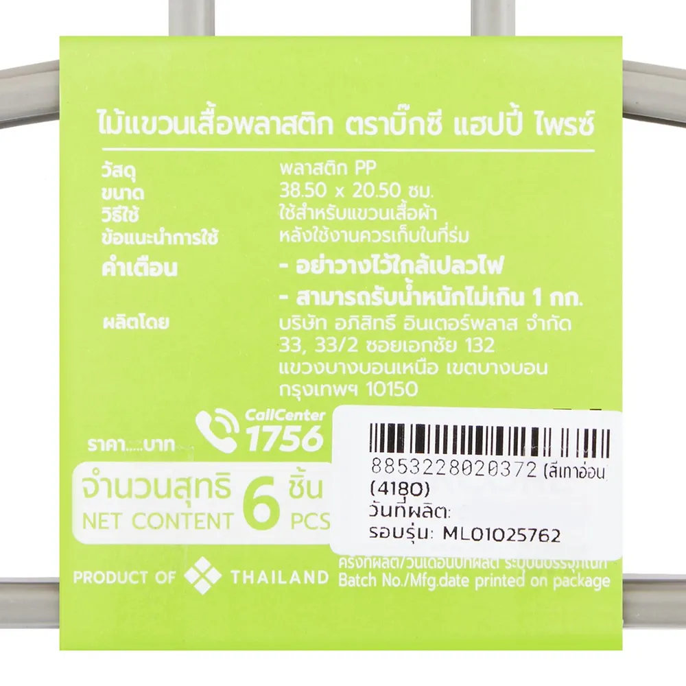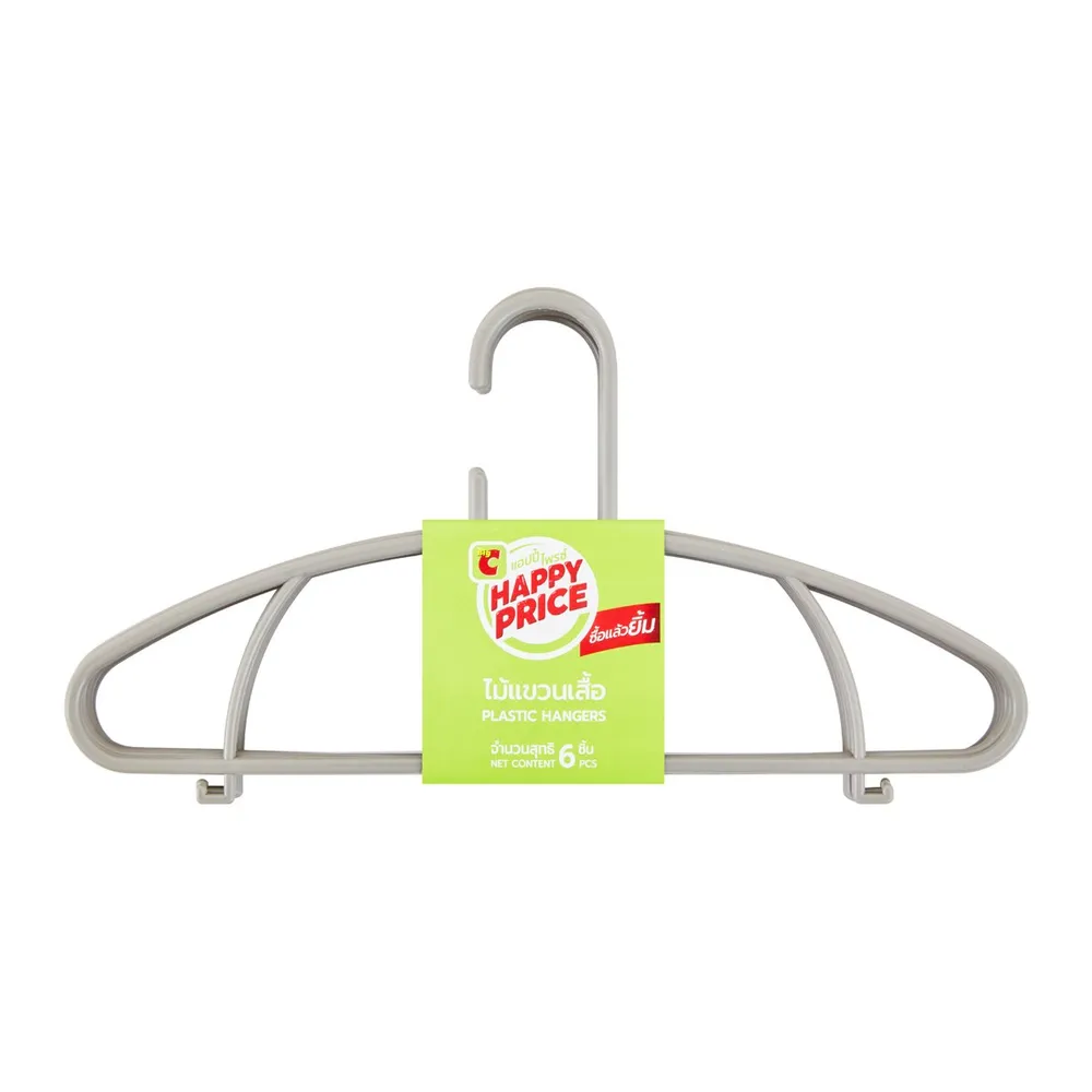 บิ๊กซี แฮปปี้ ไพรซ์ ไม้แขวนเสื้อพลาสติก รุ่น 4180 สีเทาอ่อน แพ็ค 6 ชิ้น