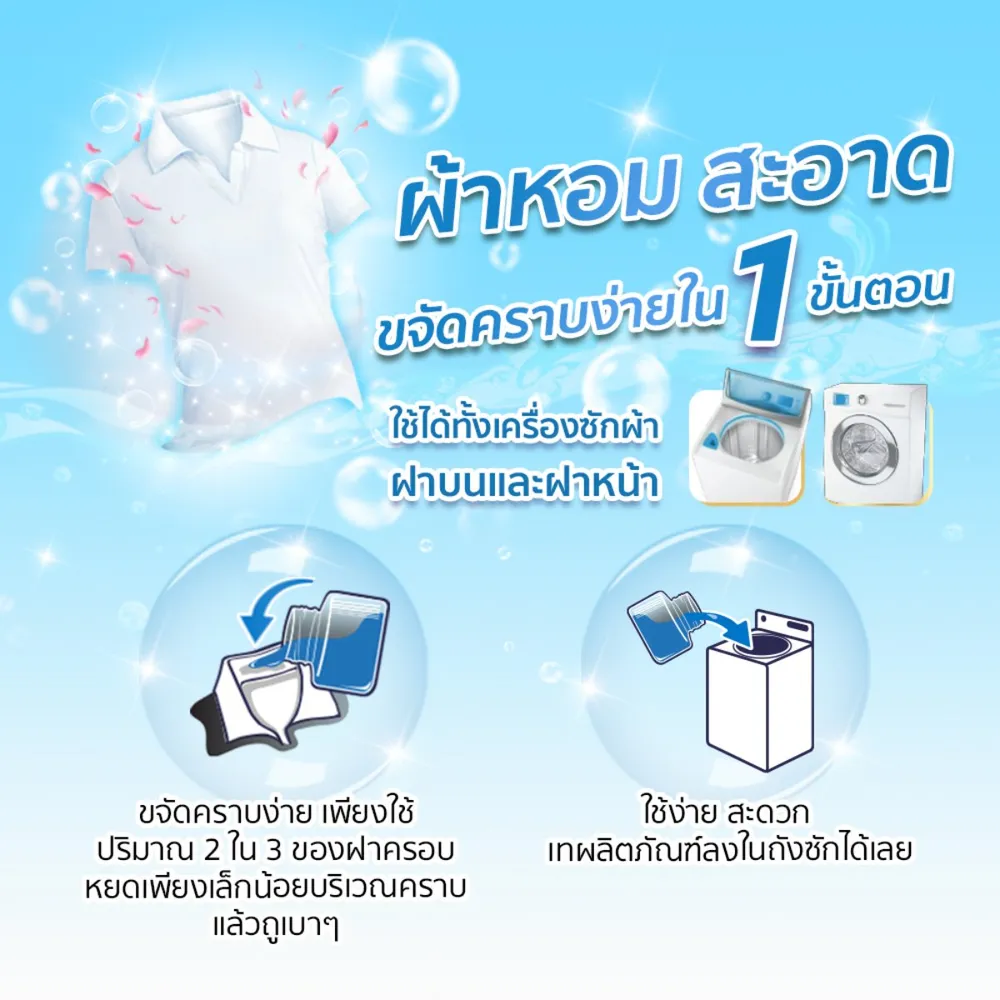 - ซักสะอาดพร้อมขจัดกลิ่นอับภายใน 1 ขั้นตอน<br />