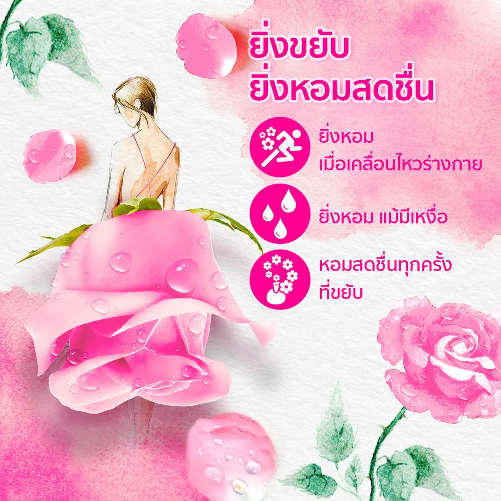 - ให้ความหอมสะอาดสดชื่นยาวนาน จากสวนกุหลาบอังกฤษ ซัมเมอร์สตรอว์เบอร์รี่ และลูกแพร์<br />