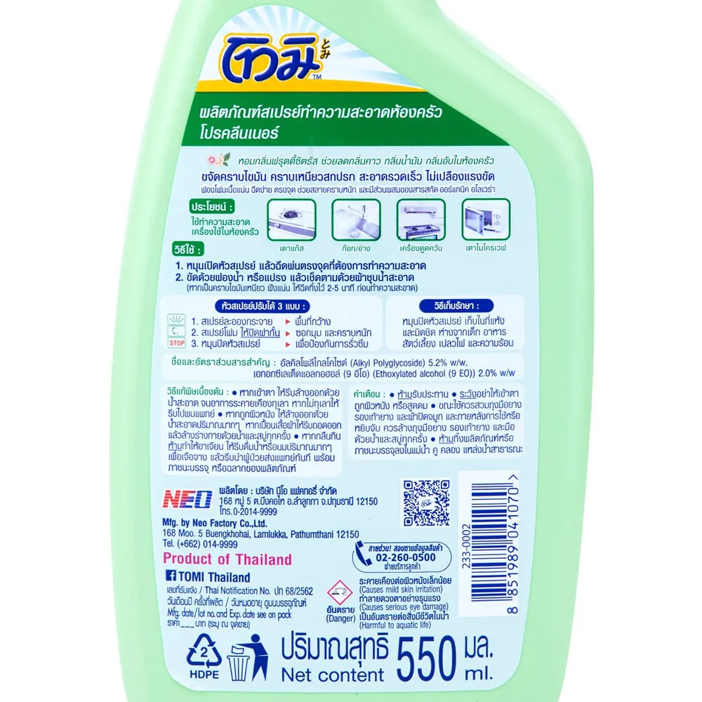 โทมิ สเปรย์ทำความสะอาดห้องครัว กลิ่นฟรุตตี้ซิตรัส สีเขียว 550 มล.