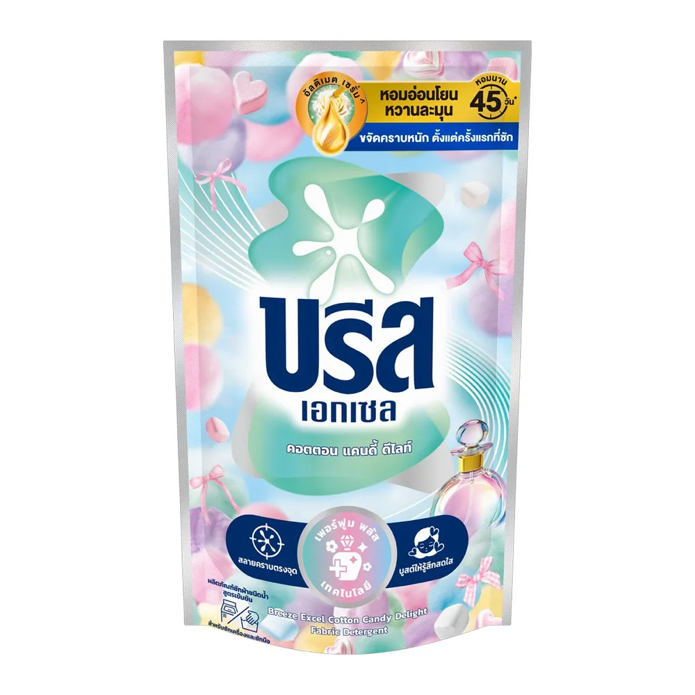 <p>บรีส เอกเซล คอตตอน แคนดี้ ดีไลท์ น้ำยาซักผ้าสูตรเข้มข้น<br /> <br /> ซักผ้าสะอาด พร้อมกลิ่นหอมหวานคาวาอี้สไตล์ แคนดี้ ดีไลท์ ที่ให้ผ้าหอมหวานเบาสบายดุจ คอตตอน แคนดี้ และมาร์ชแมลโลว์ เนื้อเนียนนุ่ม ติดทนยาวนานถึง 45 วัน บูสท์อารมณ์ให้สดใสรับซัมเมอร์<br /> <br /> - ผลิตภัณฑ์ซักผ้าชนิดน้ำสูตรเซรั่มเข้มข้น<br /> - ขจัดคราบหนัก สลายคราบตรงจุด<br /> <br /> <span style="color: #ff0000;">*บริษัทฯ ขอสงวนสิทธิ์ในการปรับเปลี่ยนราคาจำหน่ายและโปรโมชั่น รวมถึงแพ็คเกจและปริมาณสินค้าจากผู้ผลิตได้ตามความเหมาะสม โดยไม่จำเป็นต้องแจ้งให้ทราบล่วงหน้า</span><br /> <br /> *สีของสินค้าอาจมีความแตกต่าง ขึ้นอยู่กับการตั้งค่าของแต่ละหน้าจอ และภาพประกอบใช้เพื่อการโฆษณาเท่านั้น</p>