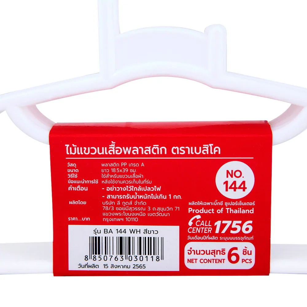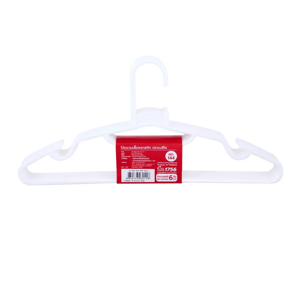 เบสิโค ไม้แขวนเสื้อพลาสติก รุ่น 144 สีขาว แพ็ค 6