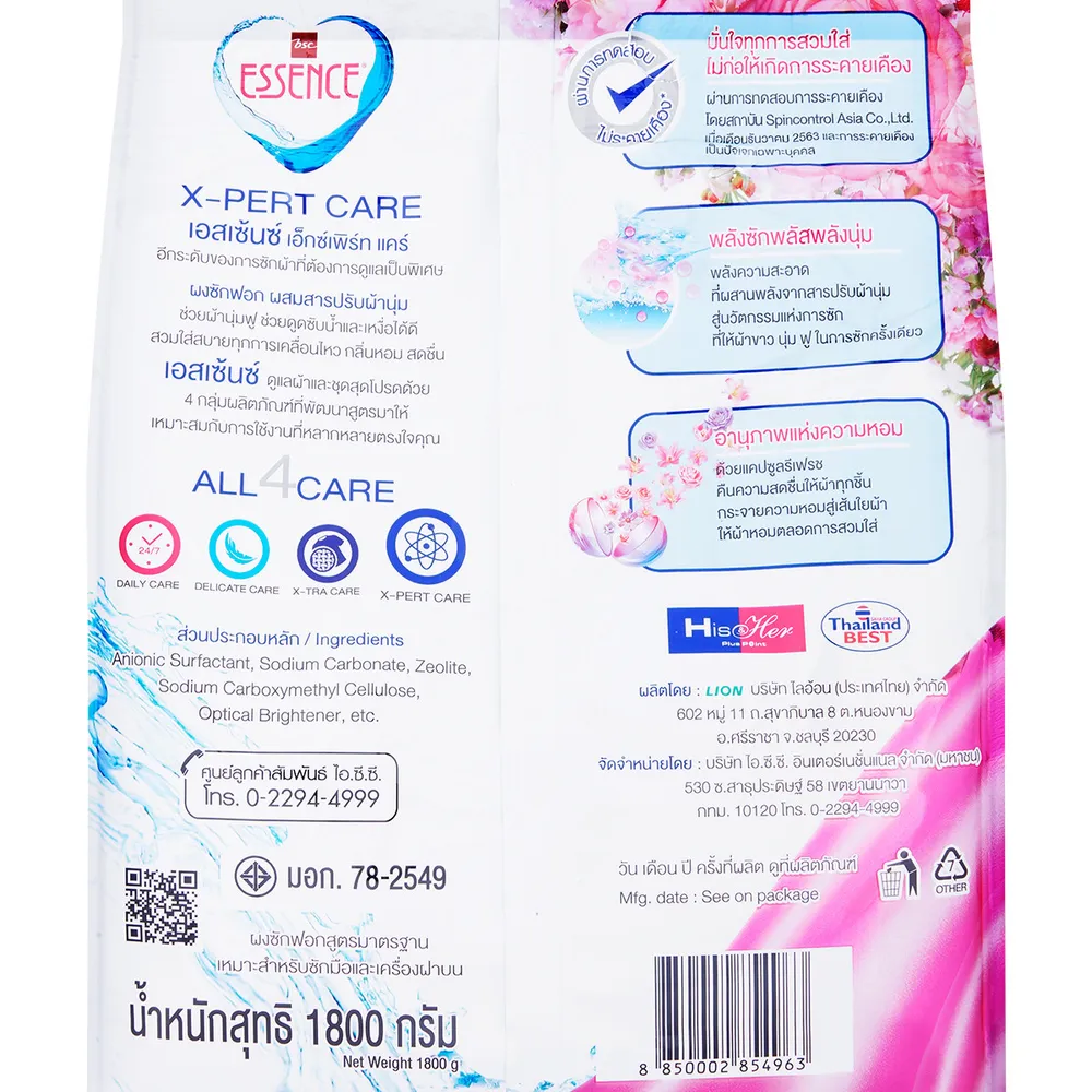 <p>เอสเซ้นซ์ เอ็กซ์เพิร์ท แคร์ ผงซักฟอก ผสมสารปรับผ้านุ่ม ซอฟท์พลัส<br />