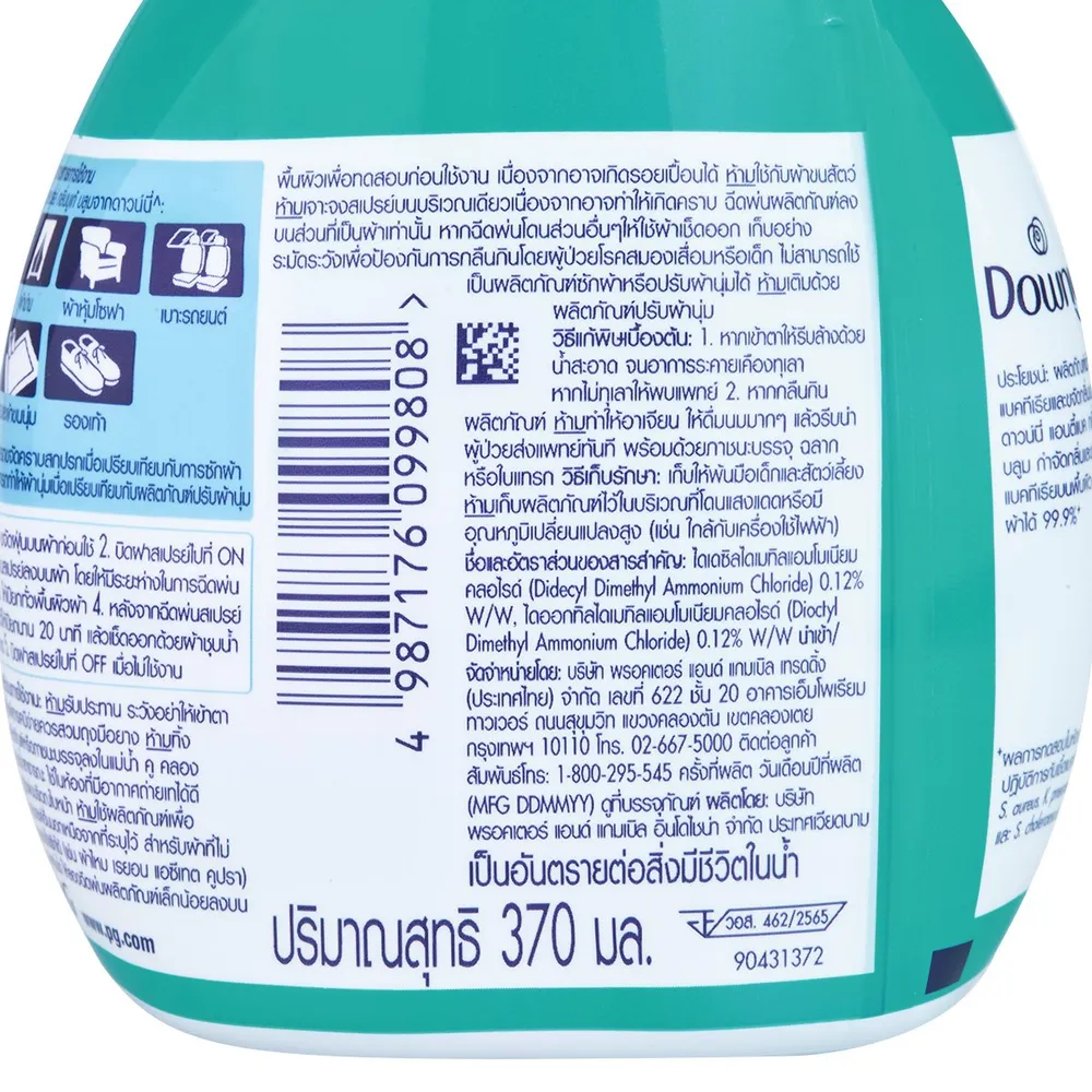 ดาวน์นี่ แอนตี้แบค ผลิตภัณฑ์ฆ่าเชื้อแบคทีเรียและขจัดกลิ่นบนผ้า กลิ่นบูเก้ บลูม 370 มล.