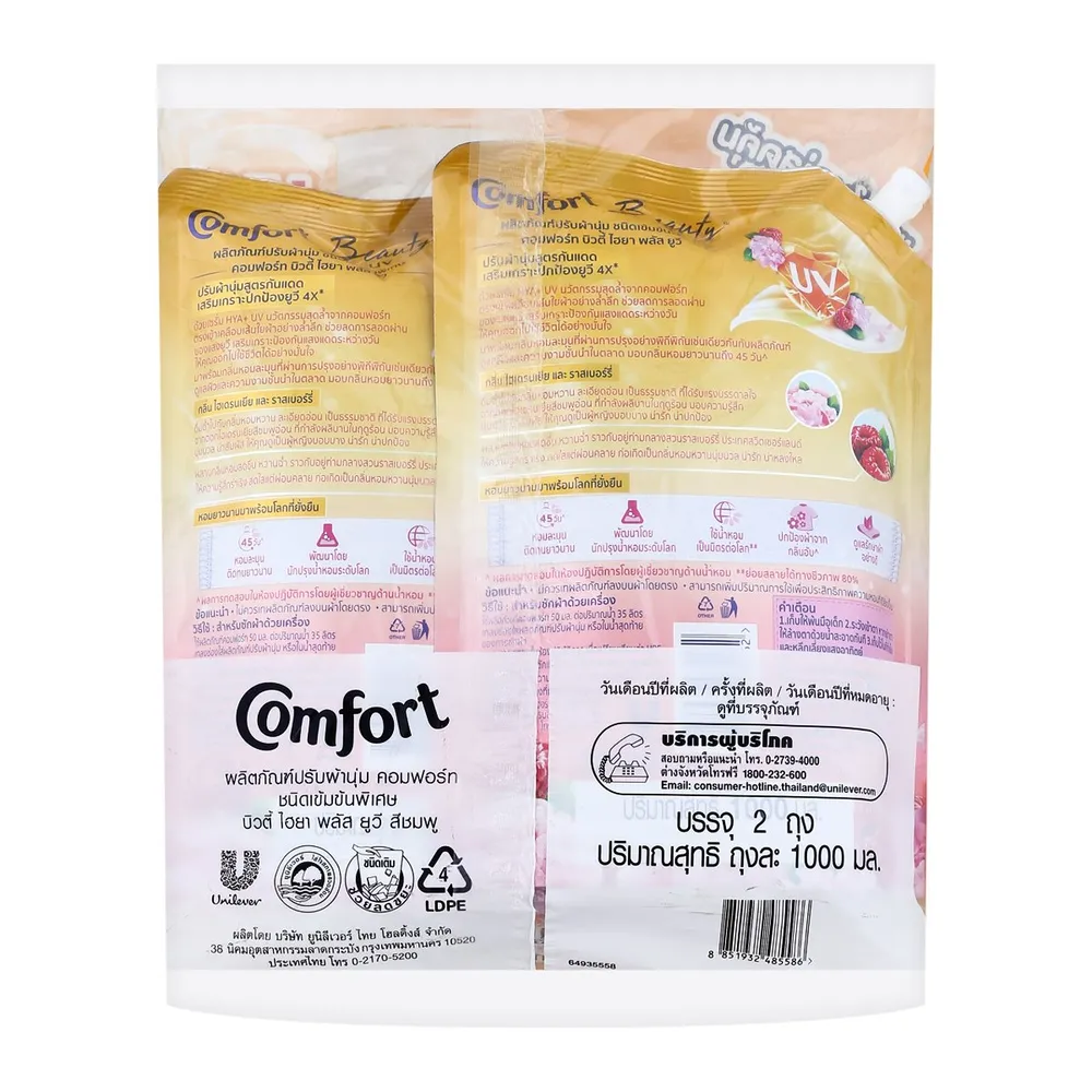 คอมฟอร์ท บิวตี้ ไฮยา+ ยูวี เซรั่ม น้ำยาปรับผ้านุ่ม กลิ่นไฮเดรนเยีย 1000 มล. แพ็ค 1+1