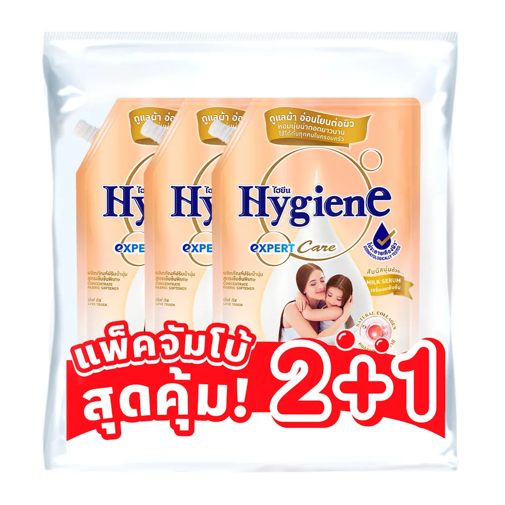 ไฮยีน เอ็กซ์เพิร์ท แคร์ น้ำยาปรับผ้านุ่มสูตรเข้มข้นพิเศษ เลิฟ ทัช 1000 มล. แพ็ค 2+1